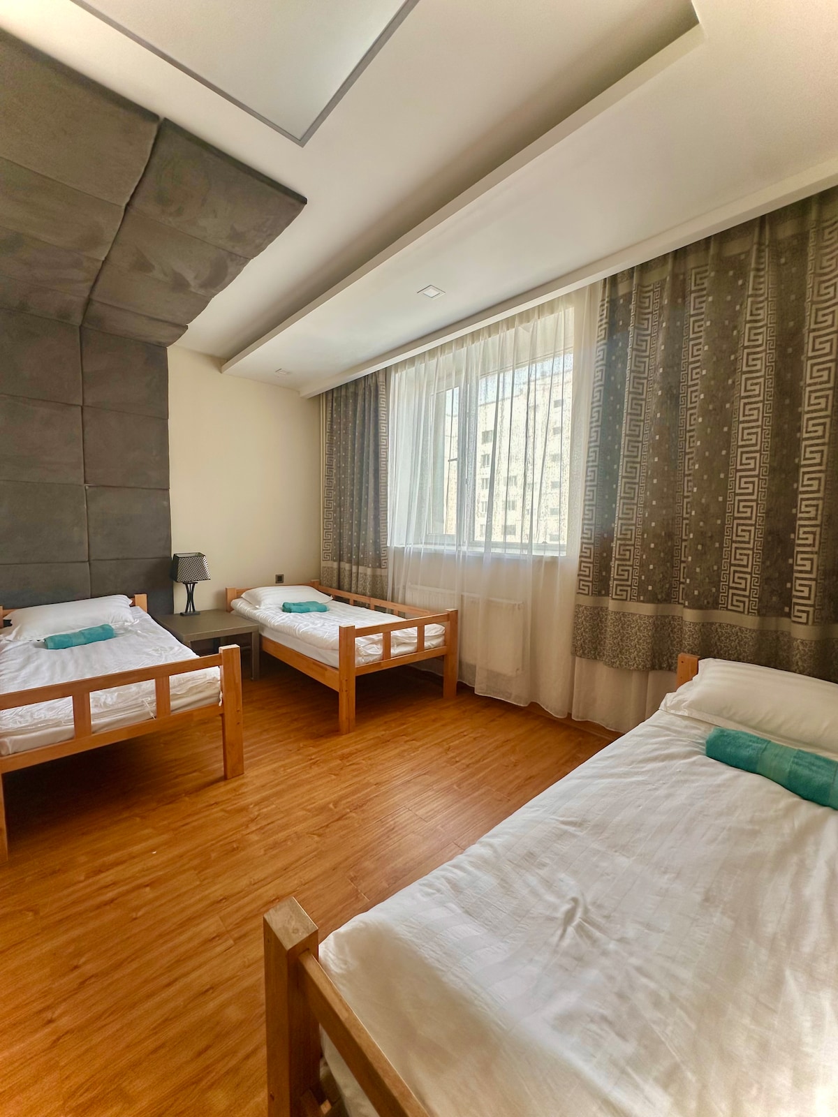 Welcome to our cozy guesthouse! Are you looking for a quiet and comfortable place to stay in the center of Ulaanbaatar? -Rooms(Accommodates 6-8 people at a time) Double bed for 1 day Price without breakfast-15 dollars, Price with breakfast-18dollars 🪟Balcony 🫕 Separate kitchen * Free Wi-Fi * Parking *Laundry service *Smoking allowed on the balcony 🪟Air conditioning * Very convenient for tourists and local travelers and guests -Ulaanbaatar city, Sukhbaatar district, Building 7B place