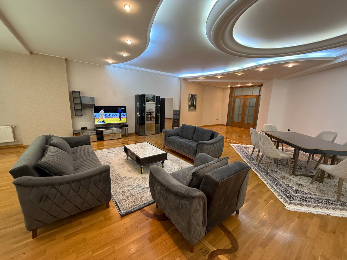 Heart of Baku: Spacious 100m² Apartment near Fountain Square This 100m² apartment in the “House with Angels” is just one flight above a bustling street in downtown Baku. Enjoy city life from the balcony or take a quick walk to Nizami Street and Fountain Square. With high ceilings, modern amenities and a glowing 4.96 guest rating, this bright, stylish home has everything you need and promises a comfortable stay in downtown Baku