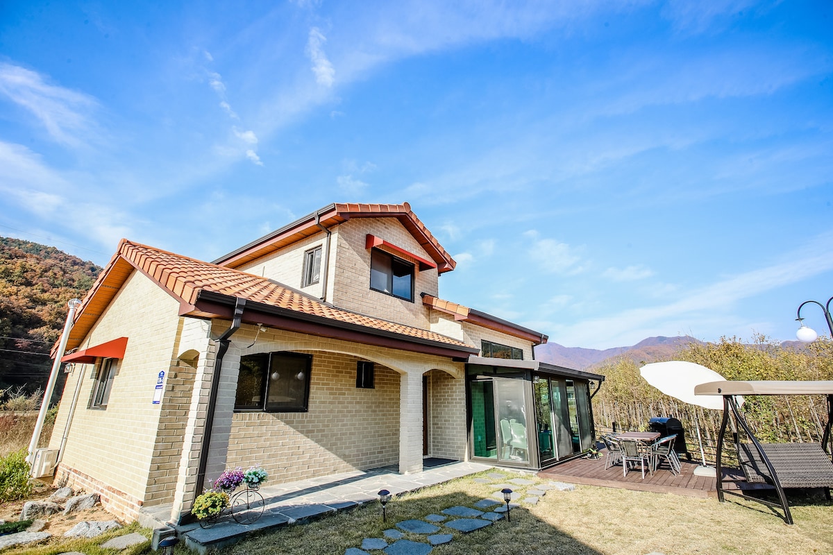 Come stay at our modern studio guesthouse (on the left). Hike the surrounding trails, relax at the lakeside park, take a short walk to the Baekje Military Museum or enjoy our large yard/deck. Near Daejeon/Yeonmudae/Gyeryong. We have recently built an in-ground, salt water lap pool (summer 2020). It is available for use May-September.