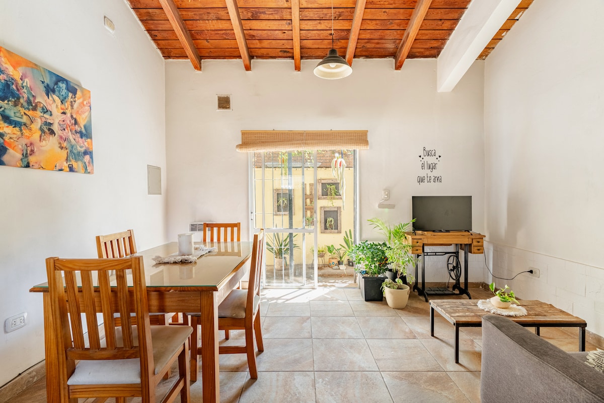 Hermosísima y encantadora casa antigua estilo Irlandés en vecindario seguro y pintoresco de la Ciudad de Mendoza. A 7 minutos en auto del centro de la ciudad y a 7 cuadras de supermercados y tiendas. La casa tiene escaleras empinadas y piscina sin barandas para niños. Si decides venir con niños pequeños debes estar en control y vigilancia de ellos permanentemente.