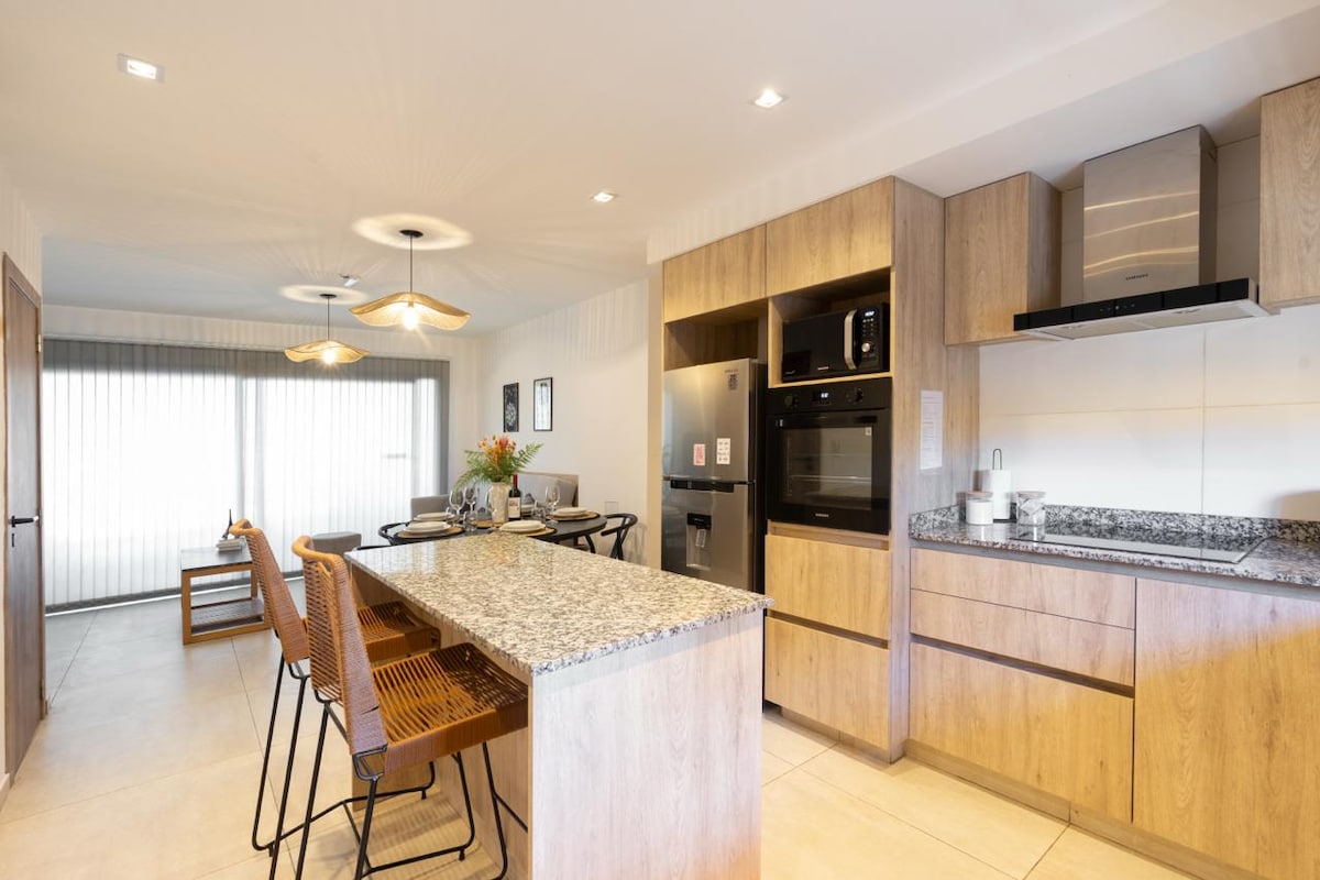 Located in a quiet residential area, it offers all the amenities you need for a stay in Mendoza. Its proximity to the downtown area (a 15-minute walk) and its peaceful location will make your stay a memorable one. Surrounded by green spaces and nearby shops, just one floor down, you'll find everything you need: a bakery, a café, an ice cream shop, and more. Half a block away, you'll find the metro, which allows you to explore the city and visit wineries.
