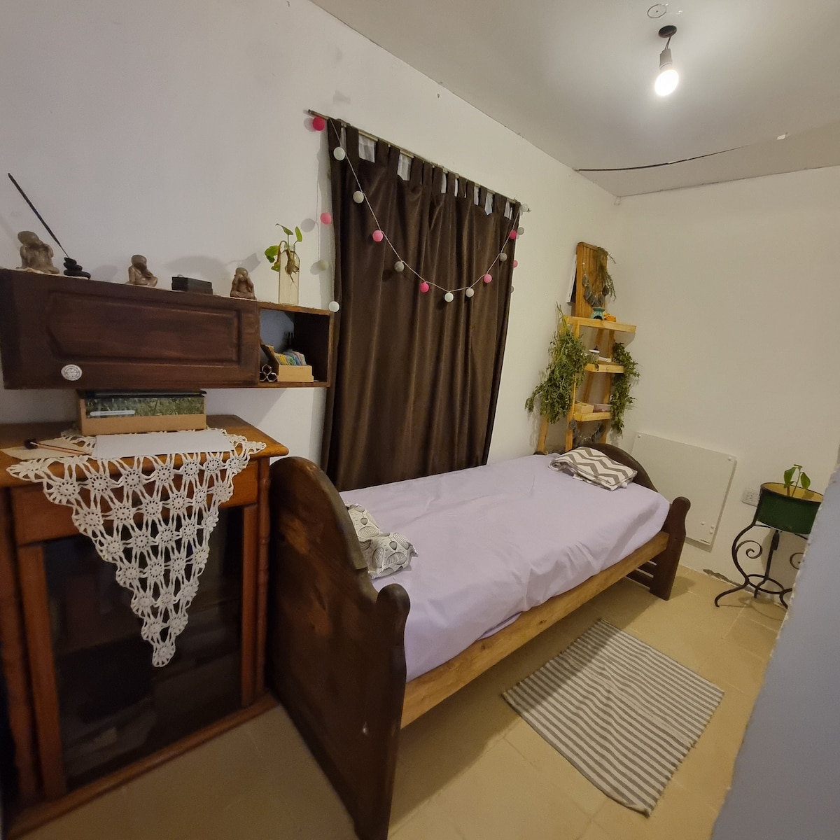 Monoambiente para 3 personas con jardín y parrilla. Cuenta con una cama matrimonial, una cama chica (como para niños) y baño con ducha y bidet incluido en inodoro. Wifi. La zona es silenciosa y tranquila. Se encuentra a 2 cuadras del centro, a 1 de calle Arístides Villanueva (zona de bares y restoranes más conocida de Mendoza), supermercados, bancos, lavandería y otros sitios de interés. Tiene buena ventilación e iluminación. Se encuentra a 6 cuadras del Parque San Martin.