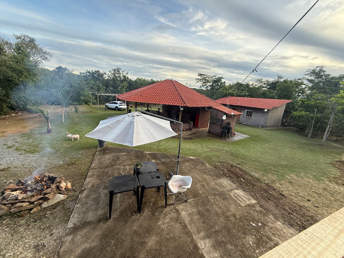 Rancho bem aconchegante com casa na árvore para as crianças .rancho amplo grama em volta quadra de areia com acesso a um Ribeirão com água cristalina , fogão a lenha e uma boa fogueira .Desconecte-se de tudo ao ficar sob as estrelas.