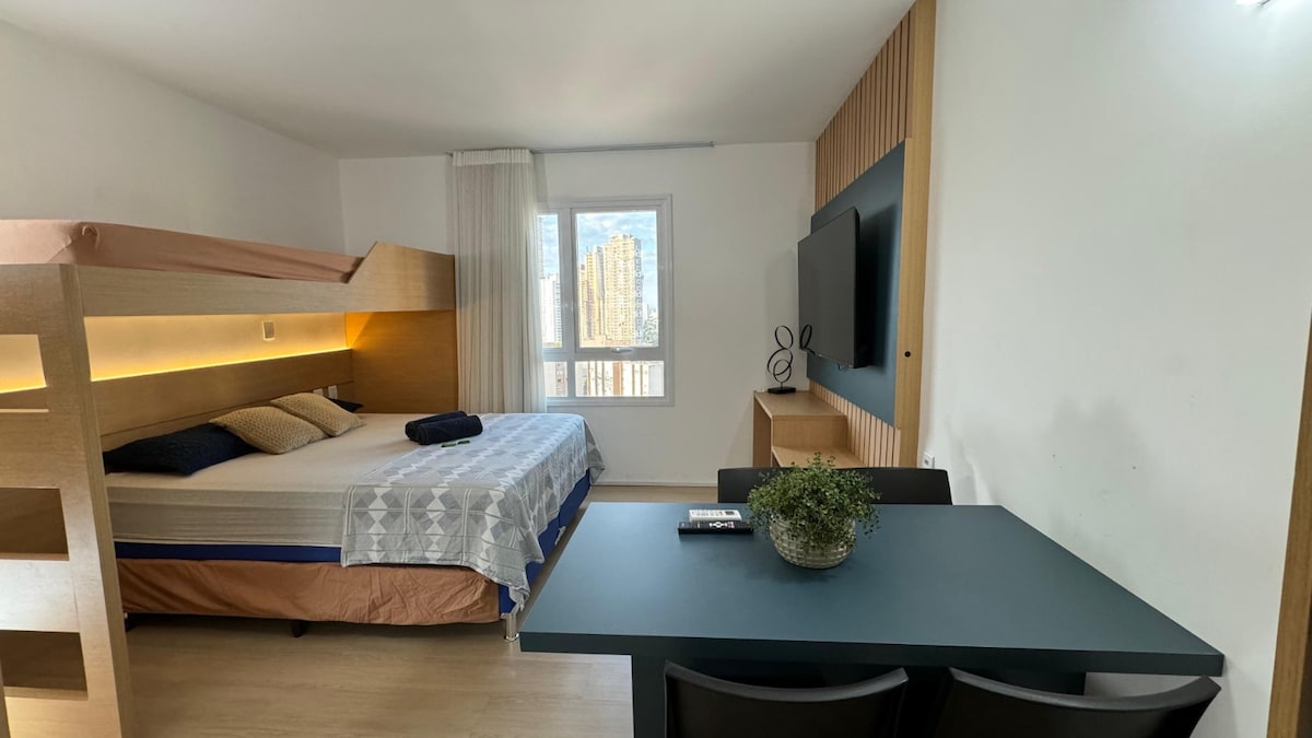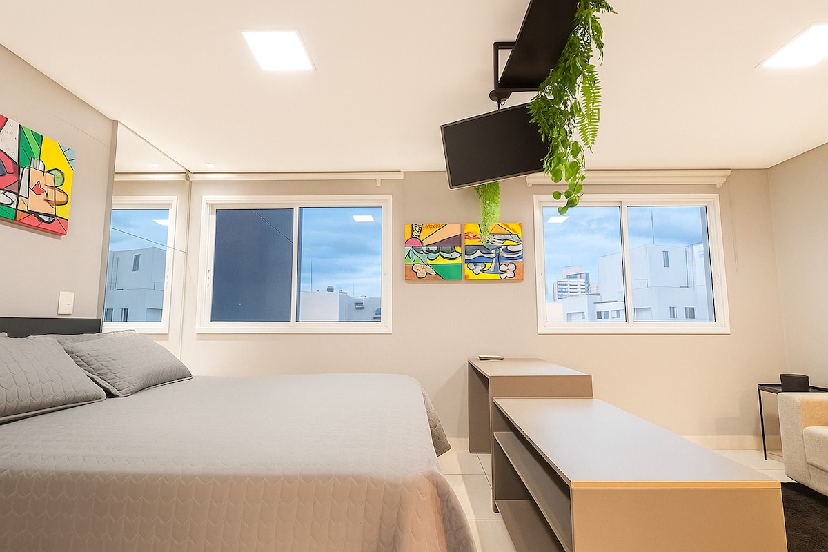 Este studio moderno e totalmente automatizado foi projetado para oferecer conforto, praticidade e elegância em Goiânia. Com design contemporâneo, o apartamento possui cama queen com enxoval premium, cozinha completa e os comandos por voz com Alexa trazem praticidade e inovação. O prédio oferece lazer de alto padrão, com piscina, academia e sauna, tudo para uma experiência completa e inesquecível.