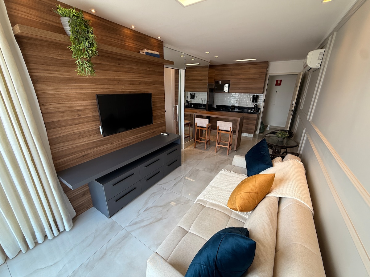 Lugar especial perto de tudo. Flat novo, muito bem decorado, com TV 55"(Netflix), ar condicionado, cama de casal queen, sofá cama de casal, roupas de cama e banho limpas e macias, máquina de lavar/secar roupas, geladeira, purificador refrigerado de água, cooktop, sacada com vista incrível, 1 vaga de garagem. Prédio é de alto padrão. Piscina borda infinita, vista panorâmica e aquecida, hidromassagens, academia e sauna na cobertura - 40 andar. Espaços temáticos, lavanderia, quadra squash, jardim.