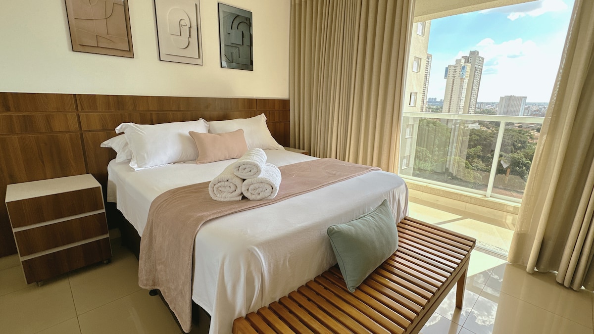 Flat aconchegante, todo mobiliado e decorado, excelente localização. Curta uma experiência elegante de alto padrão. Em Goiânia, vista panorâmica da cidade , andar alto e com garagem privativa, para quem quer ter privacidade e conforto, melhor custo benefício para sua hospedagem, assistência rápida, tratativa direta com o proprietário. Contamos com ítens que poderá compra-los mediante pagamento via pix ou QRCode. O melhor de uma estadia compacta. Venha para nossa cidade e se hospede no Flat.Gyn.