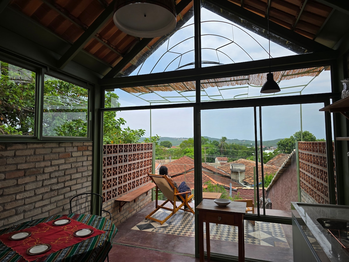 VALOR PARA 2 PESSOAS. CONSULTE A TABELA ABAIXO PARA MAIS PESSOAS antes de fazer a reserva. O preço varia por n.º pessoas e alta temporada. Casa Tempo é híbrido de arte & hospedagem, para repouso e contemplação. No Centro Histórico de Goiás com paredes de adobe e pau-a-pique, fachada art-déco. São 2 suítes, 1 qto com varanda, 1 galeria, 1 escritório, 1 banheiro social, 1 lavabo, salas de estar e jantar, cozinha, terraço, varanda, pátio e quintal. Vista privilegiada para a Serra Dourada.