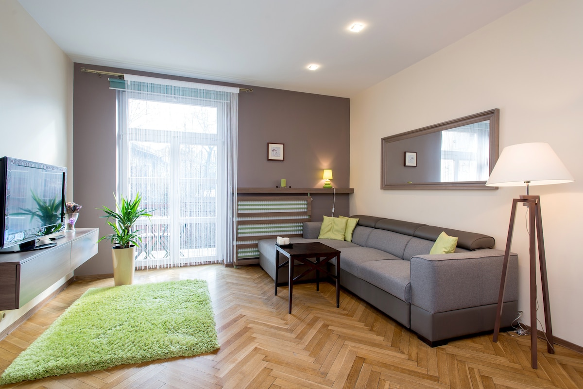 Switch on the sound system and listen to some tunes in an apartment that's a pleasing blend of old and new. Built in 1910, there are high ceilings and exposed brickwork, together with theatrical posters and a picture by local artist Marek Bielen. The Kazimierz district where this apartment is located is the formerJewish Quarter. It's very popular both for its history and its many sights. There's also an excellent choice of restaurants, pubs, cafes, and galleries, as well as nightlife.