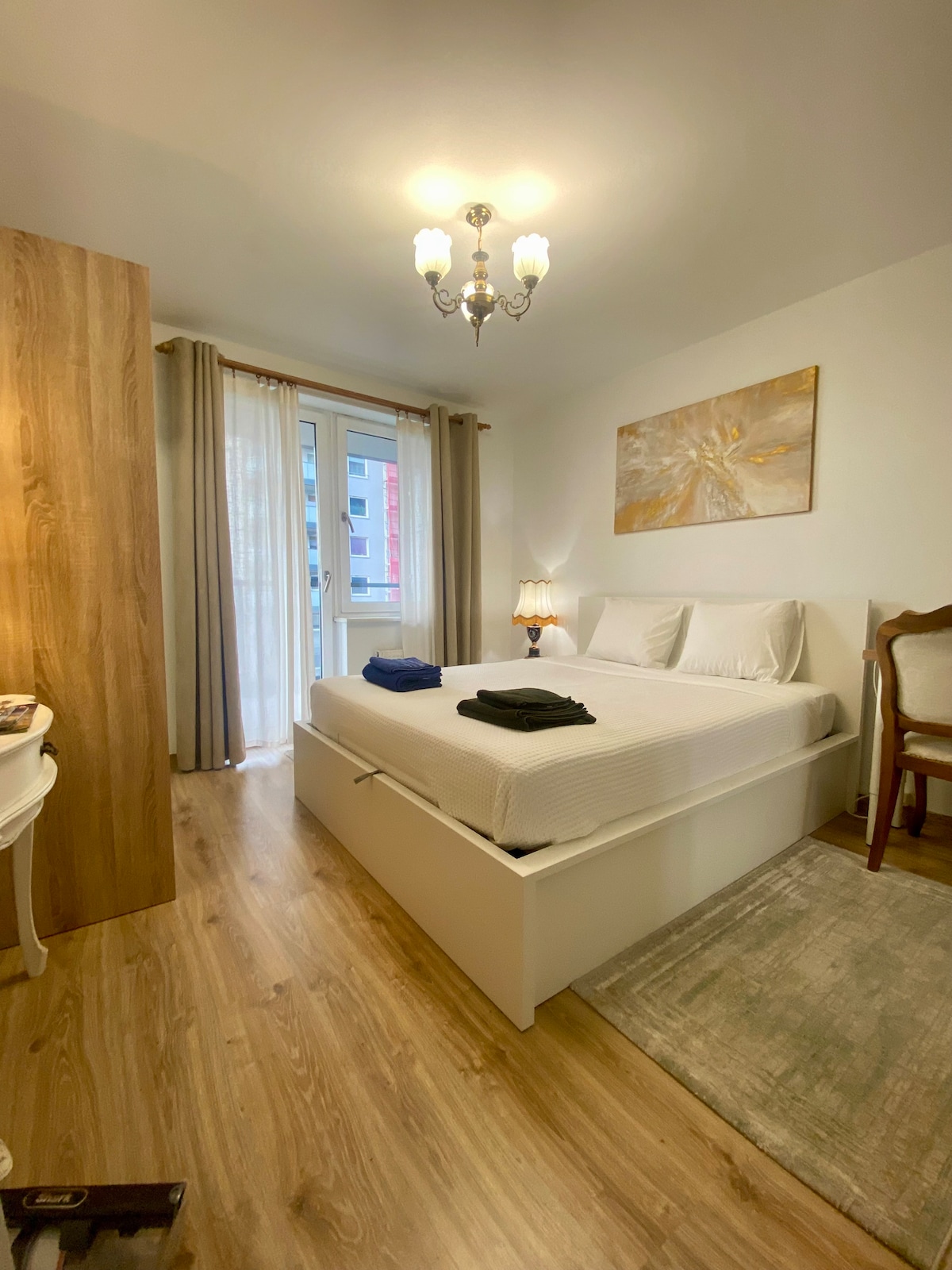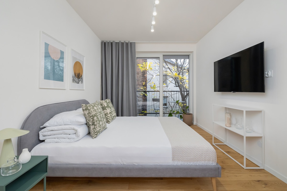 Located right in the heart of Kazimierz is this modern apt with stylish Scandi design that offers simplicity, minimalism and functionality for a truly relaxing stay. The apt features bright sun-filled living with high ceilings, soft furnishings, and floor to ceiling French doors that open out to the balcony. Walk to historic sites and Nowy Square with its top restaurants and nightlife or sit on the banks of Vistula River right on your doorstep. Make your stay in Krakow unforgettable!