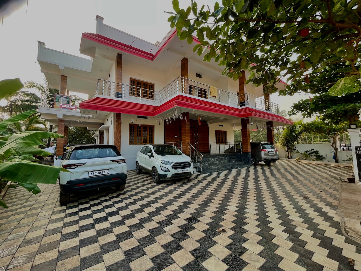 This poperty comes on NH 66 Highway. 1km away from Ankola railway station. About 15kms from Gokarna. You can enjoy beaches in Ankola which is very peaceful. Relax with the whole family at this peaceful place to stay. With 3 Nos of A/c rooms with Queen size bed with attached bath room. 1 A/c bed room with shared bath room. 1 non A/c rooms with shared bathrooms available. With free Wifi. With kitchen and Dinning hall and Sitting room with TV. Foods will be delivered as per guest's request