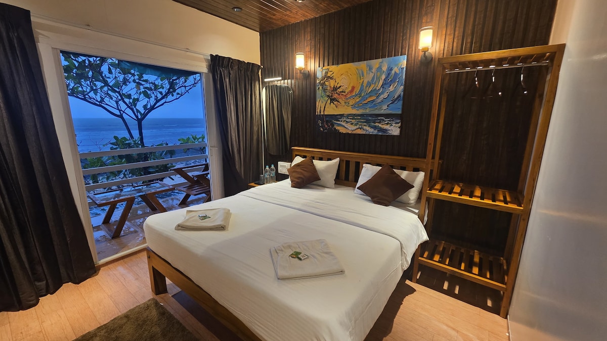 Relax Experience the Ultimate Beachfront Escape This cozy room offers stunning views of the ocean, perfect for watching the sunset directly from your private balcony. Getting Here: To preserve our serene atmosphere, we are located right on the sands with no direct road access. Parking: Secure paid parking is available at the end of the main road(Rs.300 per day) The Walk: From the parking area, enjoy a scenic 200-meter stroll along the beach to reach our front door.