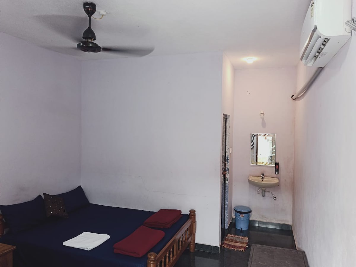 Single bed room Ocean facing house offering a jaw dropping view of the sea with the cleanest & peacefull shore, also experiencing gentle breeze between the coconut palms . There's more to experience by staying at Vedic beach farm. BASIC INFO - Main road - 200Mtr super market - 500Mtr City center 5km Railway station 5km Nirvana beach 2km . Ferry junction 3Km Gokarna 30 min drive Cafes and restaurants within 5 min of reach. safety and hygine maintained.