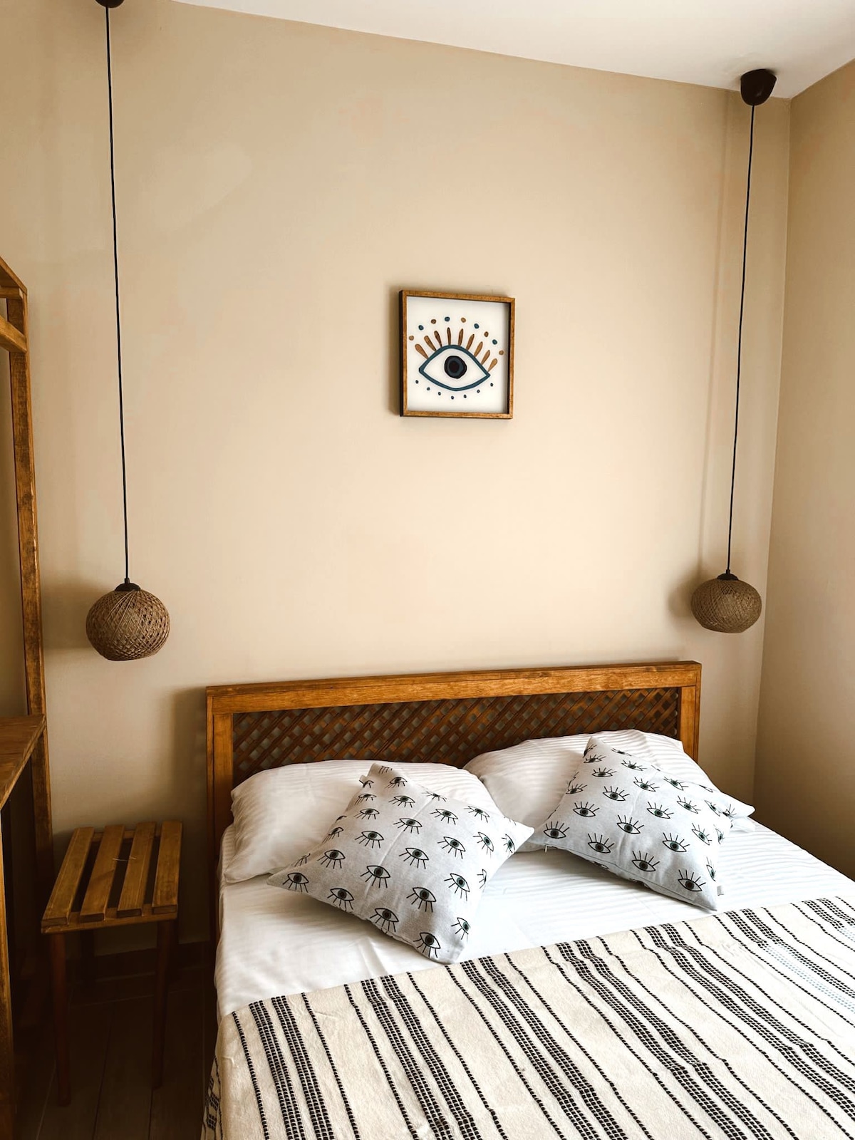 5 odalı ve her odasında balkonu mevcuttur. Her odada; klima, televizyon, mini buzdolabı, gardırop, Çekmece, kette, Amerikan mutfak ve banyo/wc, 24 saat güvenlik kamerası, sıcak ve soğuk su, ses yalıtımı.
