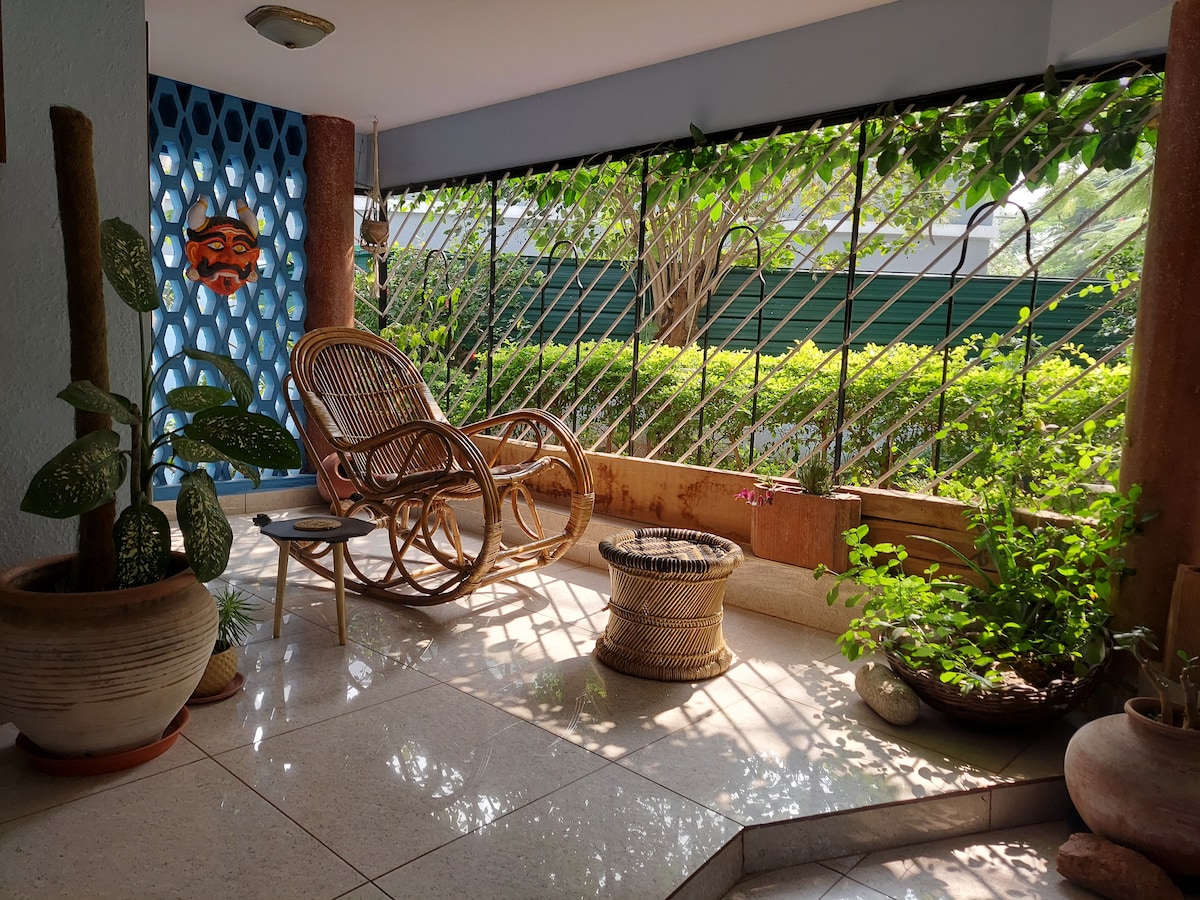 Wake up to the chirping of birds. You'll live in a quiet neighbourhood and in a home that has nature all around. Walk bare-feet in the garden. Unwind with a book or listen to your favourite music track on the swing. You can also practise yoga to the morning sun or sip coffee while you watch kids play in the park. Keep it simple at this peaceful and centrally-located place.