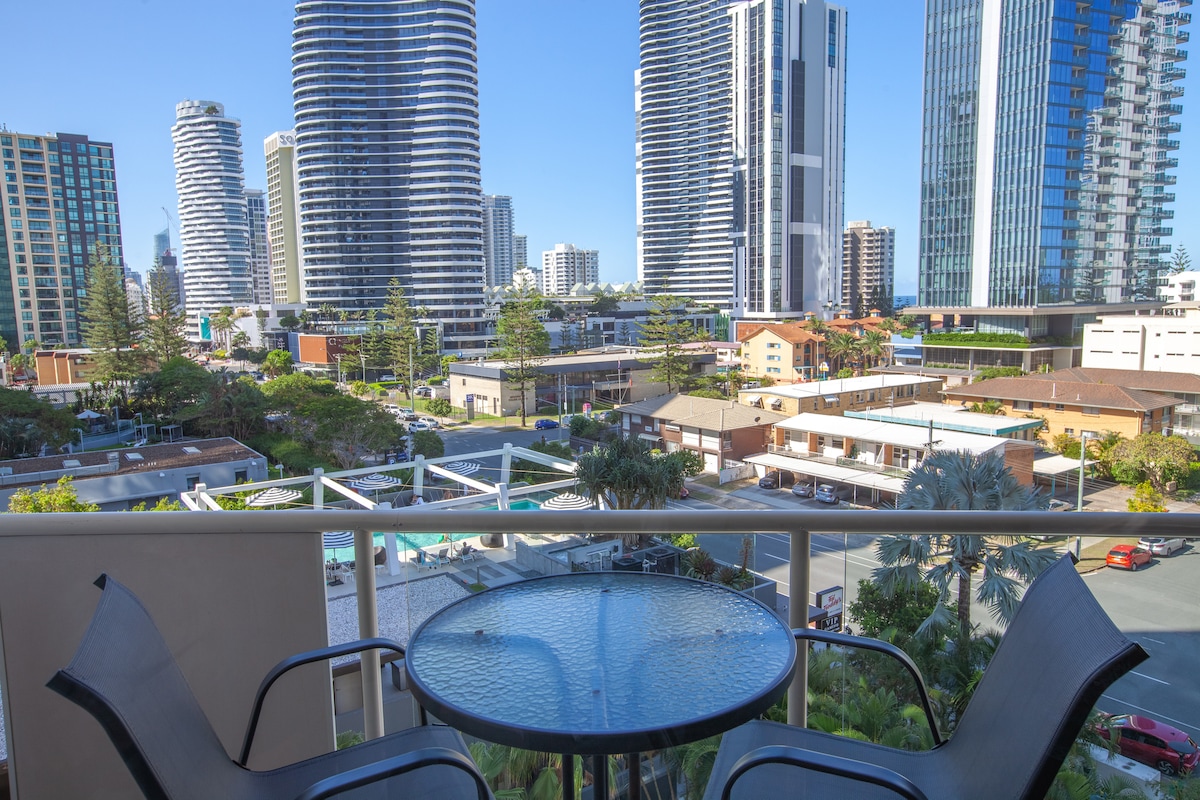 Welcome to our stunning unit with incredible views of Surfers day or night. We are one of the few that offer 1-night stays! Read our reviews that show that guests love the super comfy KING-bed, a unique bath, and kitchen with a fully-stocked pantry for DIY cooking. We also offer Netflix, Wifi, and AH check-in. NB: secure basement parking will be additional rate quoted prior Key collection is 2 streets away