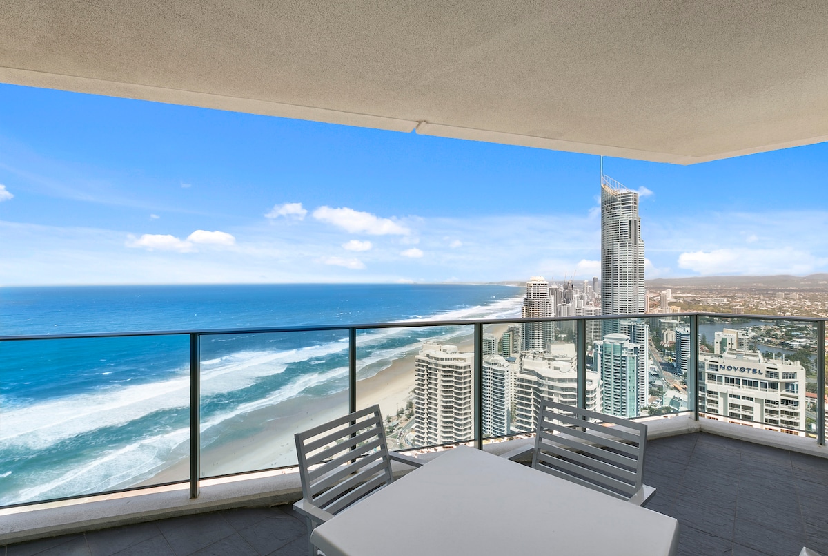Direct ocean and city views from this brand new luxury 2-bedroom, 2-bathroom corner apartment. You will be high in the sky on level 50+. The unit is complete with FREE PARKING in the buildings gated underground car park. Absolute beachfront location at the newest building in central Surfers Paradise. The unit is equipped with everything you will need for your stay including fast 5G WiFi and more! Enjoy the heated outdoor pool, spa, grass/picnic areas, gym, cafe, and restaurants.