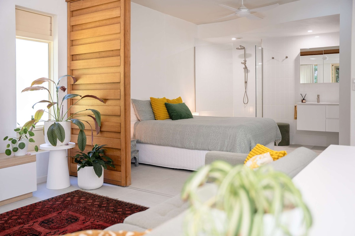 Set in the leafy green suburb of Kenmore, the Garden Suite is a fully self-contained sanctuary designed for adults seeking peace & seclusion. This ground-floor retreat offers self-check-in and a private entrance, that opens onto a picturesque garden patio—an idyllic backdrop for your morning coffee or a quiet evening drink. While enjoying this tranquil setting, you remain perfectly connected: Brisbane’s CBD is just 10km away and local cafes, shops & scenic parks are all within an easy stroll.