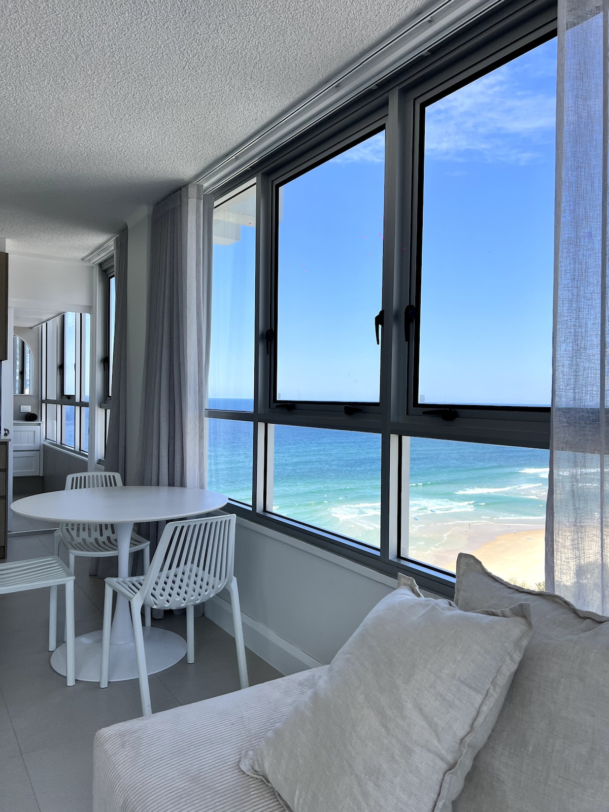 Beachfront apartment located on a high floor featuring wall to ceiling windows, private balcony with Amazing Ocean Views & beach access to Surfers Paradise beach straight across the road. Apartment features a king bed in the bedroom & fold out double sofa bed in the lounge. Fully equipped kitchen, high speed Wi-Fi, air conditioning, TVs with Netflix & YouTube, free parking & a complete private laundry. Guests have access to the gym, spa, sauna, pool & BBQs near the pool and on the rooftop.