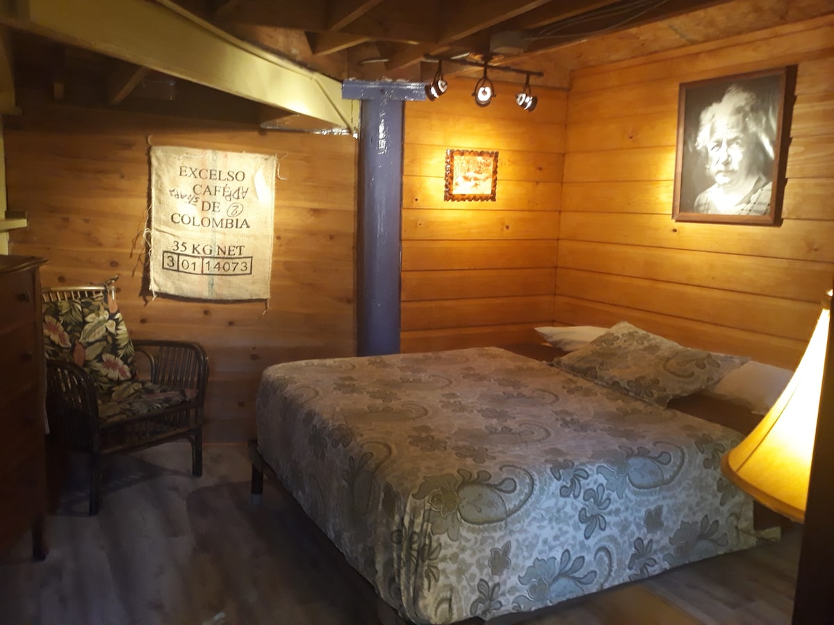 We call this sweet little spot on our land, "La Casita." A Cool, cozy, cabin w tropical vibes tucked into our food forest garden at Finca Morada, a LGBTQ & BIPOC centered artist cooperative & educational center on a 1/2 acre in North Miami. Enjoy glamping with cold A/C & full sized real mattress, hot outdoor shower, compost toilet, while also connecting with nature. Beach is 10min drive away. Note wifi access is limited in the Casita but strong on the screen porch/kitchen area.