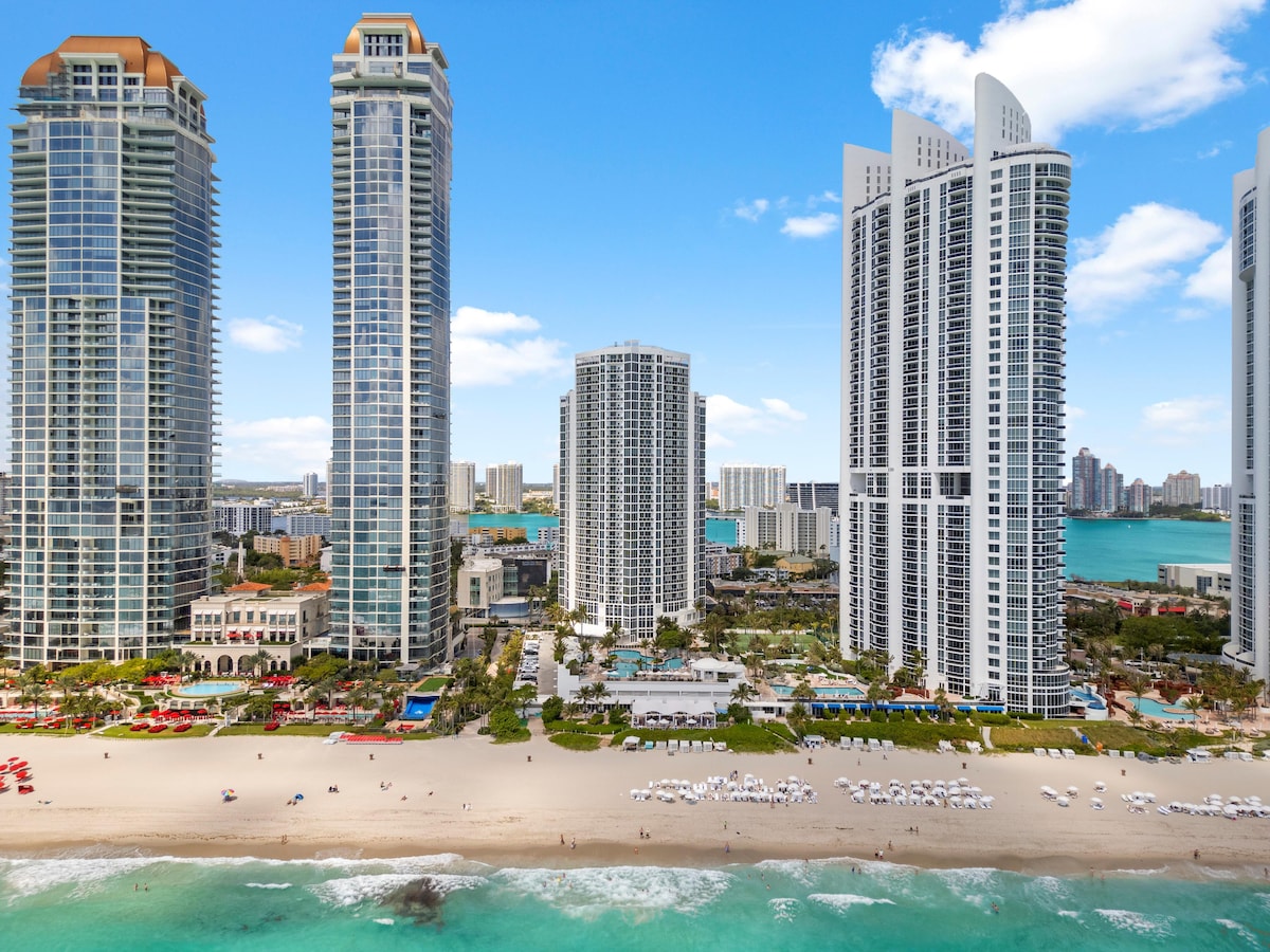 Exclusive Deluxe Oceanview Studio – 25th Floor With Private Balcony 🏖️ Sunny Isles Beach | Luxury Beach Resort: 18001 Collins Ave •Stunning Ocean view •Full shower & tub in spacious bathroom •Completely renovated with unique design •Only 2 rooms like this in the entire resort with COMPLEMENTARY WET BAR WET BAR fully loaded alcoholic beverages and more •Sleeps up to 4 guests: 2 Queen size Beds •Privately managed for personal service 💳 Resort fee: $135/day (includes 2 access cards)