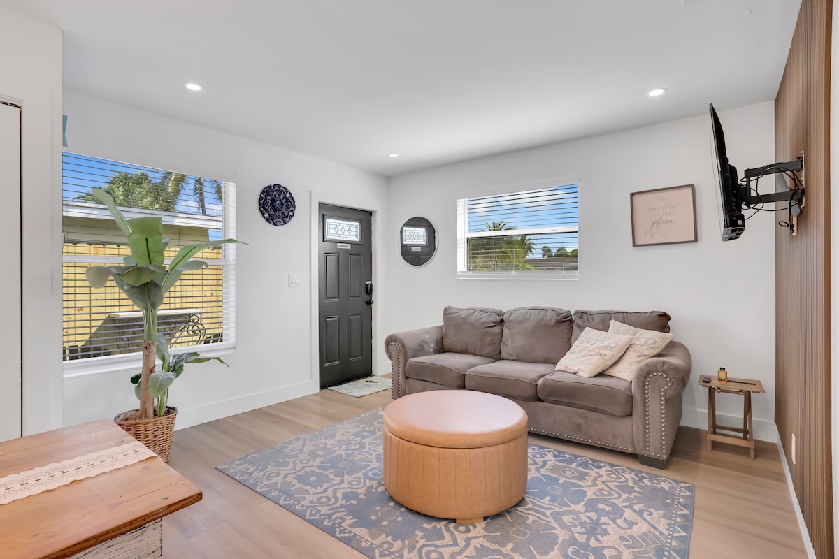 Retreat to this modern, BoHo-inspired accommodation and enjoy the look & feel that comes with the territory. Each space is thoughtfully designed with you in mind so get ready to fall in love! You'll enjoy a 65" SMART TV, 1Gb internet, & a fully stocked kitchen! Top service & amenities are yours to enjoy courtesy of your 5-Star Superhost! Sparking Clean and fully compliant with all of AirBnb's sanitation & safety protocols. Only 5 min from the beach and 15-20 min from from airports.