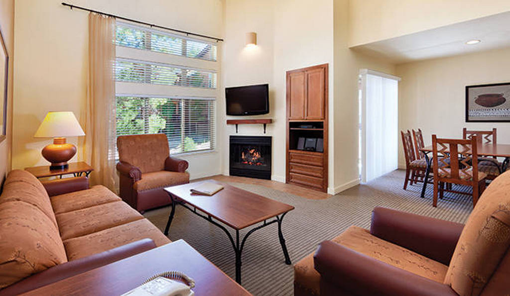 Surrounded by the majestic Sierra Mountains, rustic Wyndham South Shore is less than 3 miles from the aquatic pleasures of Lake Tahoe at Zephyr Cove. You'll find tons of ways to float your boat - from ski boat and kayak to sailboat and paddle board. In winter, jazz up a hot cocoa, grab a handful of snow and relish the crisp chill. Heed the call of the wild and go dog sledding or get the ultimate rush as you hurtle down the mountain. Back at the resort, jump in a hot tub or snuggle by fireplace