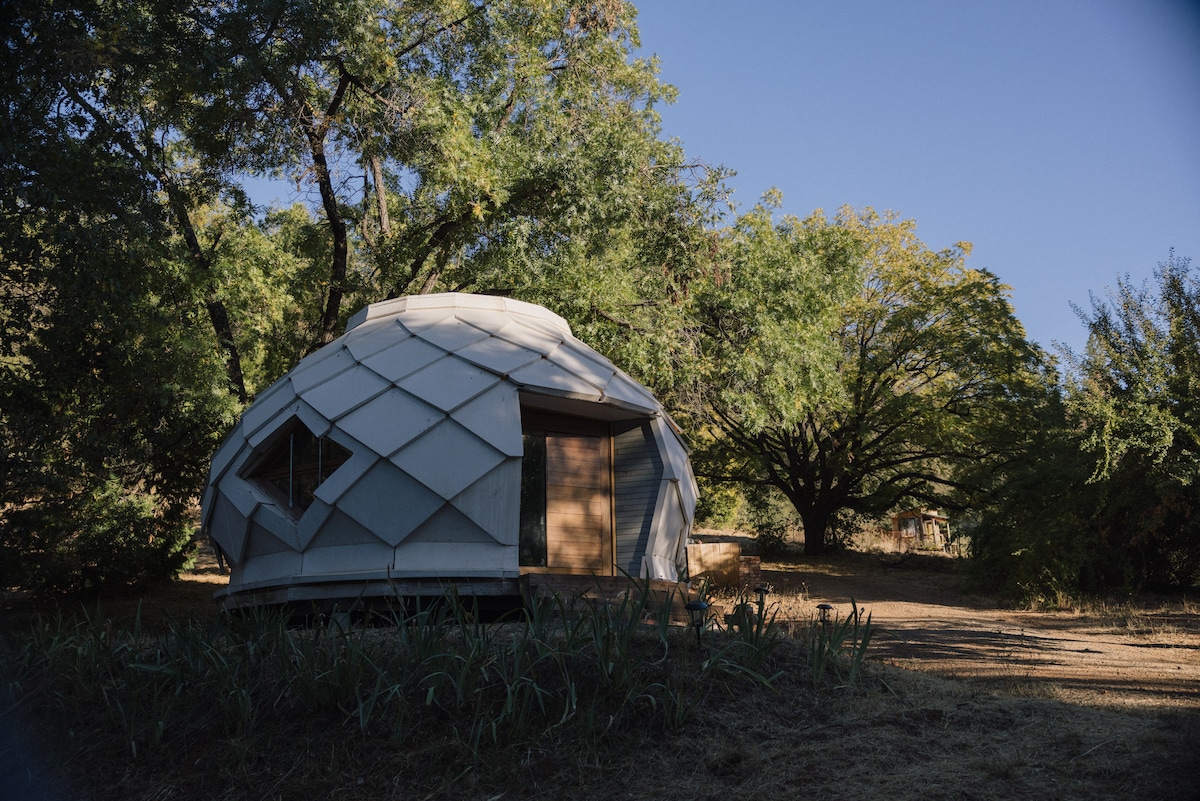 This modern zonohedral dome is located on a private 80 acre ecological reserve and vineyard in the Sierra Nevada with a private spring. Enjoy cleanliness and quiet, step outside onto a private 80 acre forested gully in the most biodiverse county in the US. Or head to the nearby Yuba River, Table Mountain, or Nevada City. Explore a rare and exciting wine appellation, or just turn off. “Corners constrict the mind....Domes break into new dimensions.” -Steve Baer