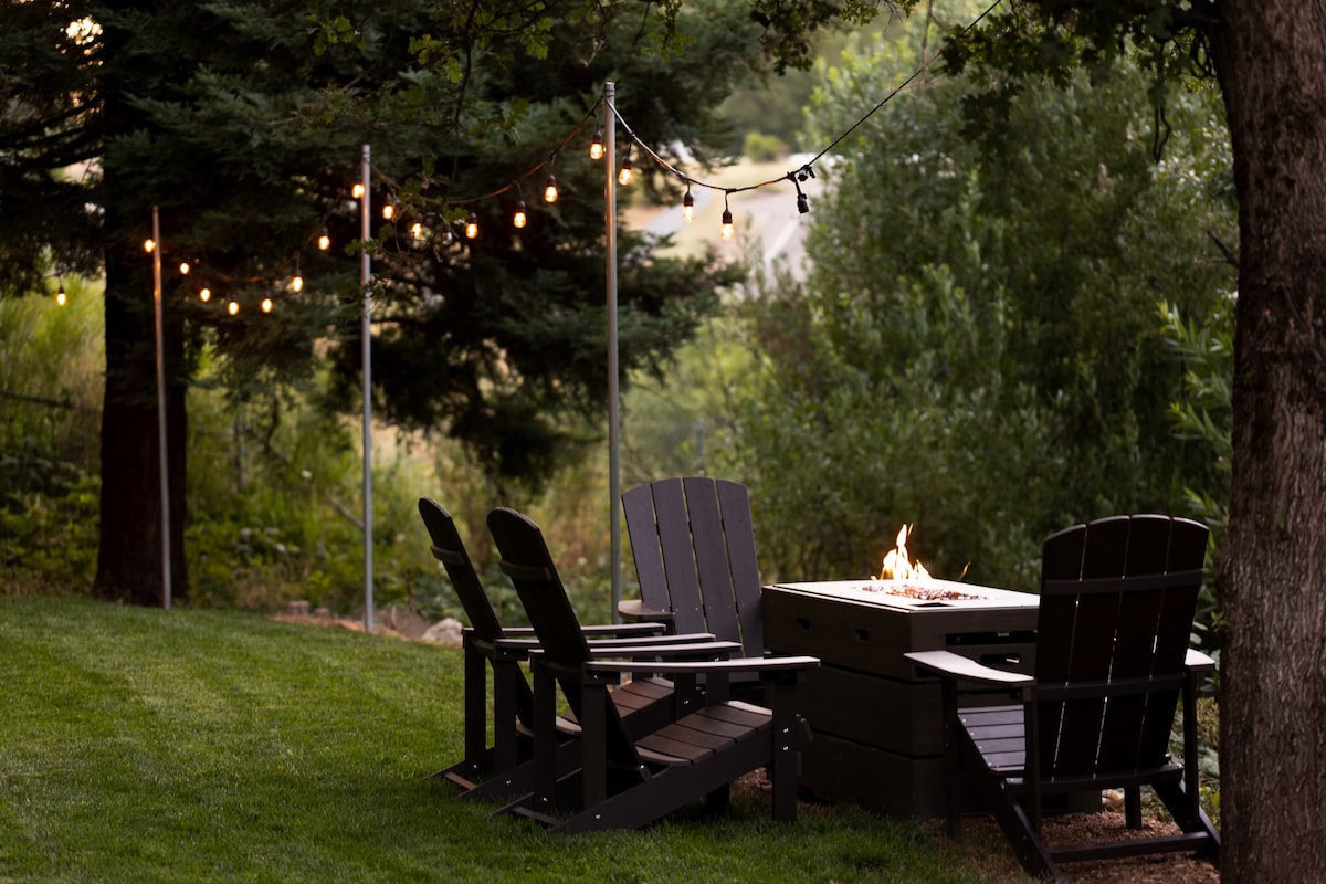 We invite you to visit the Triangle Ranch, 2023's 7th most wish-listed home in the world. Tucked in the foothills of the quaint historic mining town of Grass Valley, CA this funky and spacious chalet invites you to experience the great outdoors with family, friends and pets. Enjoy the hot tub, basketball court, treehouse, kid rooms, bbq, fire-pit, pickle-ball, horseshoe, disc-golf, home theater, and more. One hour from Tahoe and 10 minutes to town, you’re never short of things to explore.