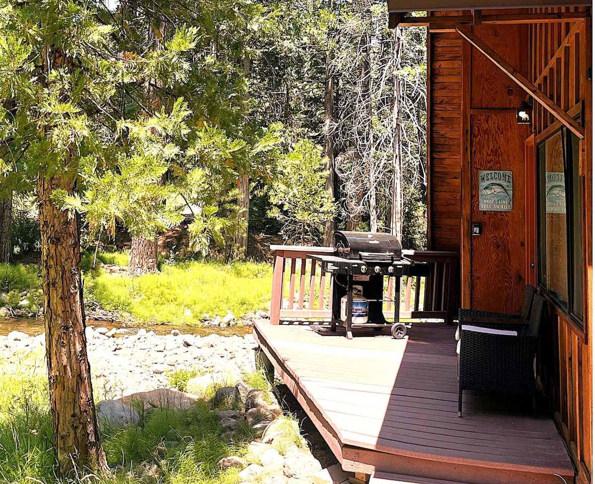 Permit # 2023180 Creekside cabin at 6,000 feet elevation. Forests, Alpine Peaks. Mountain magic! Fall asleep listening to the creek. World's most comfortable Queen Bed. Cute cabin on its own 1/3 of an acre creekfront in historic Markleevillage. cozy, private 1 bdrm cabin with kitchenette, living room, large deck, gardens! Grover Hot Springs State Park! Rivers and lakes galore. 45' to Tahoe, Kirkwood. Sierra ski resorts. dvds galoreHike, bike, write, read, ski, explore, fish, relax!