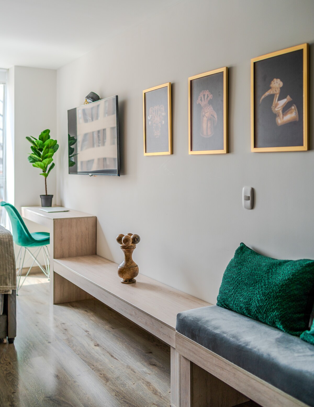 This spacious and bright apartment-studio is located in the heart of Bogotá, one of the most historic and cosmopolitan areas of the city. From the apartment and common terrace on the same level, you can enjoy stunning views of the city, including the hill of Monserrate and the Colpatria towel. The location is perfect. It is within walking distance of the Plaza Bolivar, Bogotá’s Primate Cathedral, the Gold Museum and other attractions.