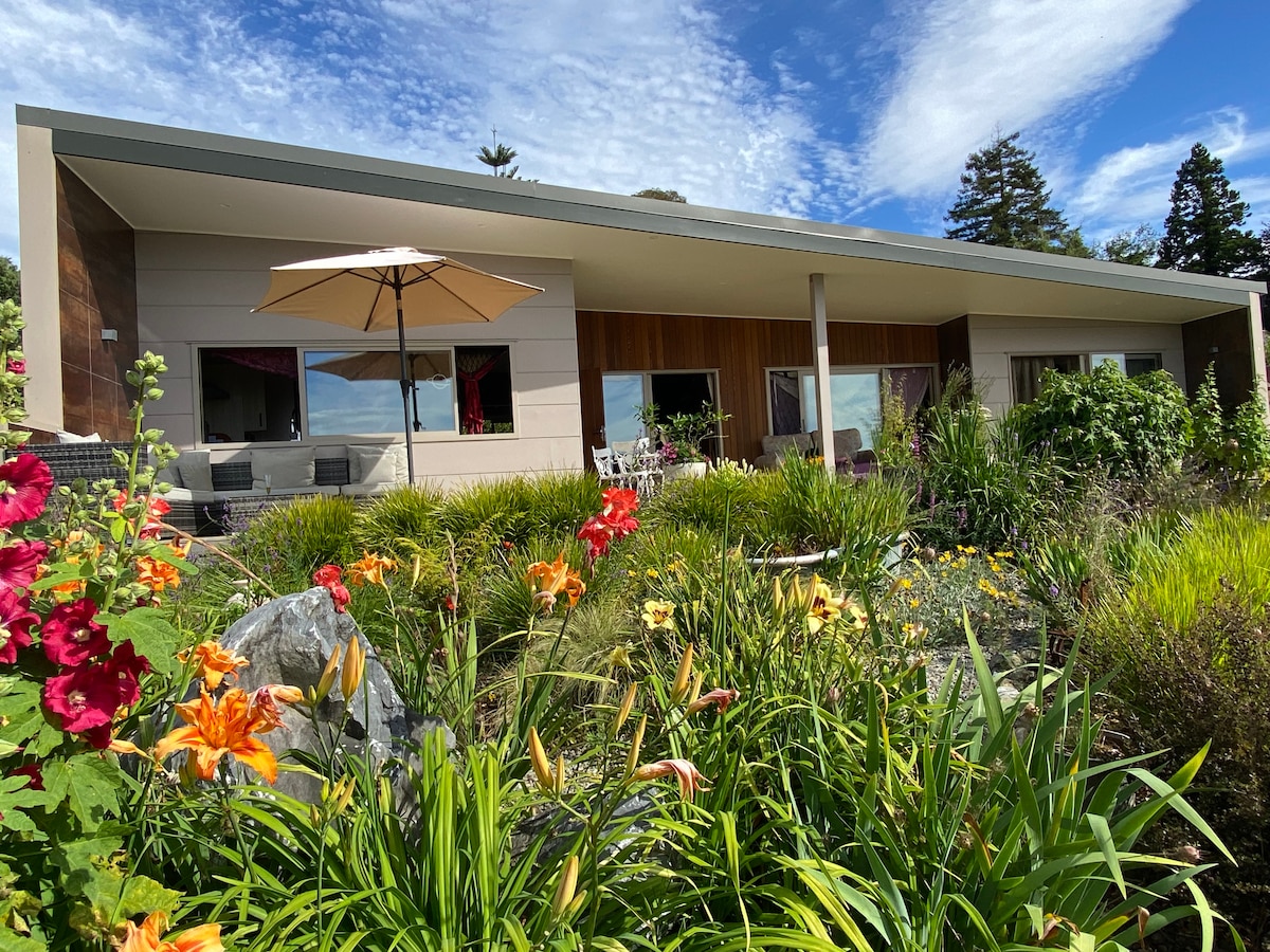 Peaceful, if you want a quiet nights sleep in a self contained cottage, this is it! Panoramic sea views in a rural garden setting & native bush surrounds. Don't forget to go outside and look up at the stunning night sky, you'll see the milky way. 5 minutes drive from Takaka & central to everywhere in Golden Bay. Very comfortable and modern bathroom with underfloor heating. Private deck from bedroom with sea view. Full kitchen facilities. Smart TV with movies. Wonderful birdlife.
