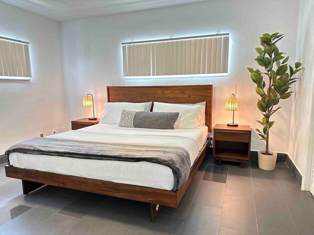 This amazing mini resort has been created with the ultimate comfort of our guests in mind. Enjoy a courtyard and pool deck designed with plenty of outdoor seating and a tiki hut. The property has synthetic grass through out, perfect for kids and family to sit and play on. Super fast Wifi. USB ports in the bedroom. Super comfortable bed. Smart Tv that you can Stream your favorite movies to. Washer/Dryer combo. Outdoor BBQ. Our home is located Minutes from downtown and Hollywood beach/ boardwalk.