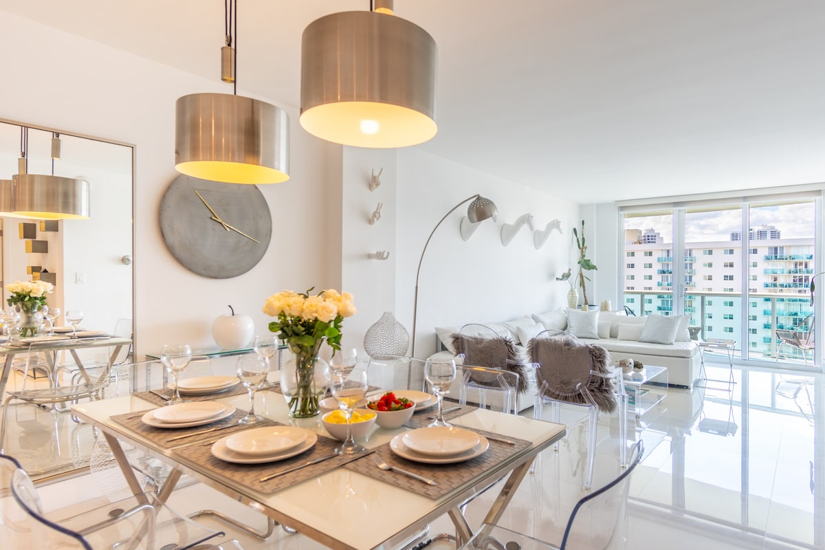 Beautiful 907 sq. ft. condo, 3-4 min walk from the ocean. You are 5 min from Aventura Mall, a short drive to South Beach and to both Ft. Lauderdale and Miami Airports. Gulfstream casino is 10 minutes away. This condo is fully furnished with flat screen TV's, new bedroom sets, new appliances, good quality furniture throughout the whole unit. The building has heated pool, free WIFI in condo and free parking! There are many shopping nearby, coffee shops, pharmacy, banks, gas stations, restaurants.