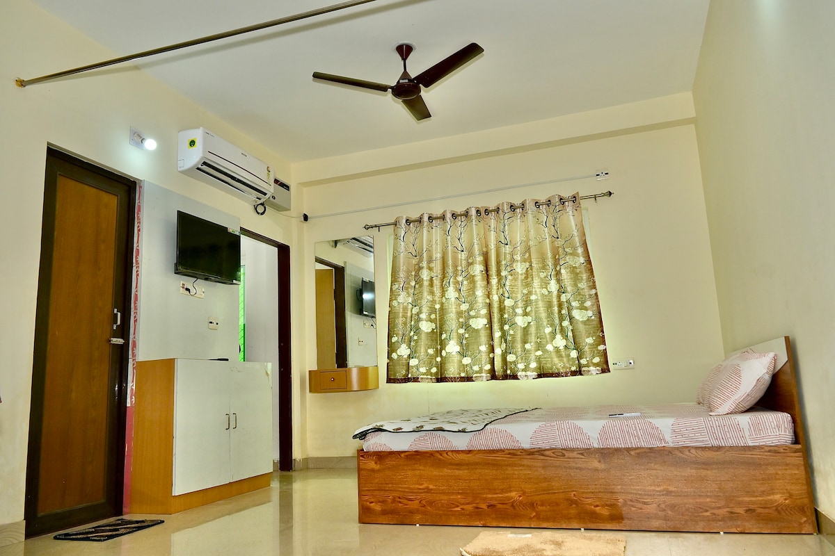 Fully furnished studio apartment (455 sq ft) located at Laxmi Nivas, CT road, Puri Centrally Located : 1 min walk to the beach, 10 mins ride(3.5km) to Shree Jagannath Temple, 1.5km from the station Room on 1st floor - No lift Perfect for couples,friends or a family of 3. Kitchen(breakfast,tea & reheating), Wi-fi, AC, TV, Fridge, geyser, balcony. Power backup available. Parking - subject to availability. Need to inform beforehand for confirmation. Bike/Car rentals available nearby.