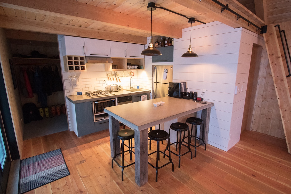 Modern tiny home, surrounded by mountains in the Canadian Rockies! Soak in the hot tub, relax in the treehouse sauna or on the spacious deck. ️ Perfectly located for adventure: 6 minutes to downtown Golden 20 minutes to Kicking Horse mountain resort Easy access to Yoho, Glacier, Banff, and Bugaboo Parks Queen bed + pull-out couch Modern kitchen with everything you need to cook Full bathroom with shower High-speed WiFi Shared hot tub and treehouse sauna Private deck with BBQ