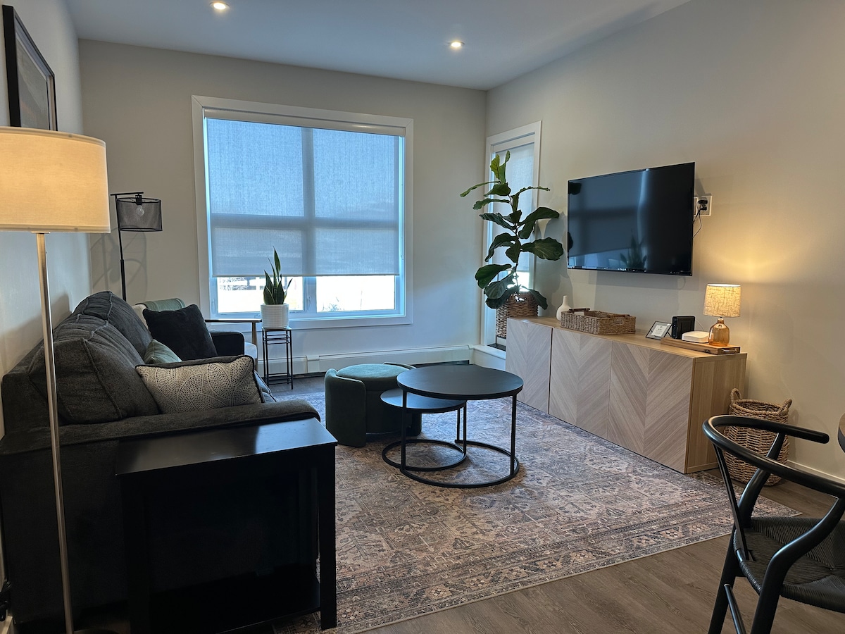 Perfectly located on the edge of downtown with unobstructed stunning views of the Kicking Horse River, Selkirk mountains & ski hill. 1 bed/1 bath unit on the 3rd floor; one of only 3 units with a river facing balcony. Fully stocked kitchen and comfy pull-out couch in the living room. Steps away from the river, downtown, cafe, grocery store, shops, brewery, Spirit Square and more! South facing balcony to soak in the sun as you listen to the sounds of the river. Self check in and free parking.