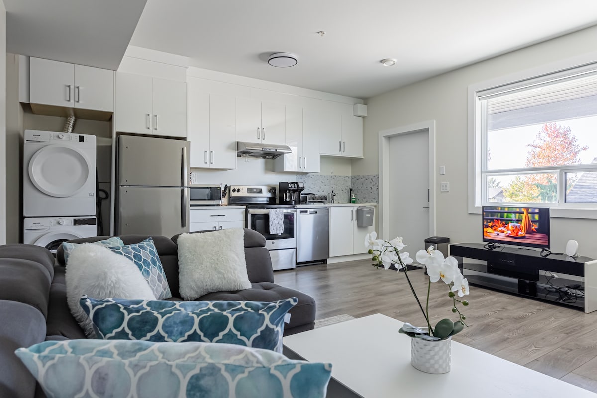 Unwind and make yourself at home in our newly designed guest suite with a private entrance in a peaceful family-friendly neighbourhood. You’ll have your own private bedroom, bathroom, and a comfortable living area with TV, along with a dedicated workspace that includes a desk and monitor - ideal for remote work. Enjoy the convenience of in-suite laundry, and explore the area with ease — we’re close to great restaurants, shopping plazas, and just an 8-minute drive from beautiful Fort Langley.