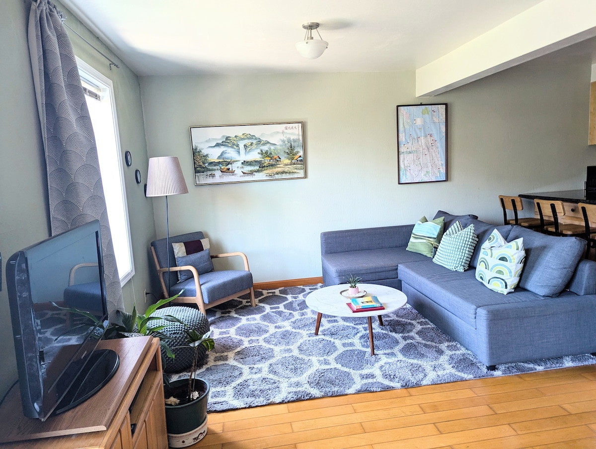 Come stay on the 1st floor of our beautiful 3-story house, complete with a separate entrance and private space including a bedroom, bathroom, living room, and kitchenette. You will also have access to our laundry room and backyard garden, and you can use our kitchen upon request. Please note that, while we try to be respectful about noise, sound travels easily in our place. We also have two children and a cat, so you are likely to hear us at times. People from all backgrounds are welcome!
