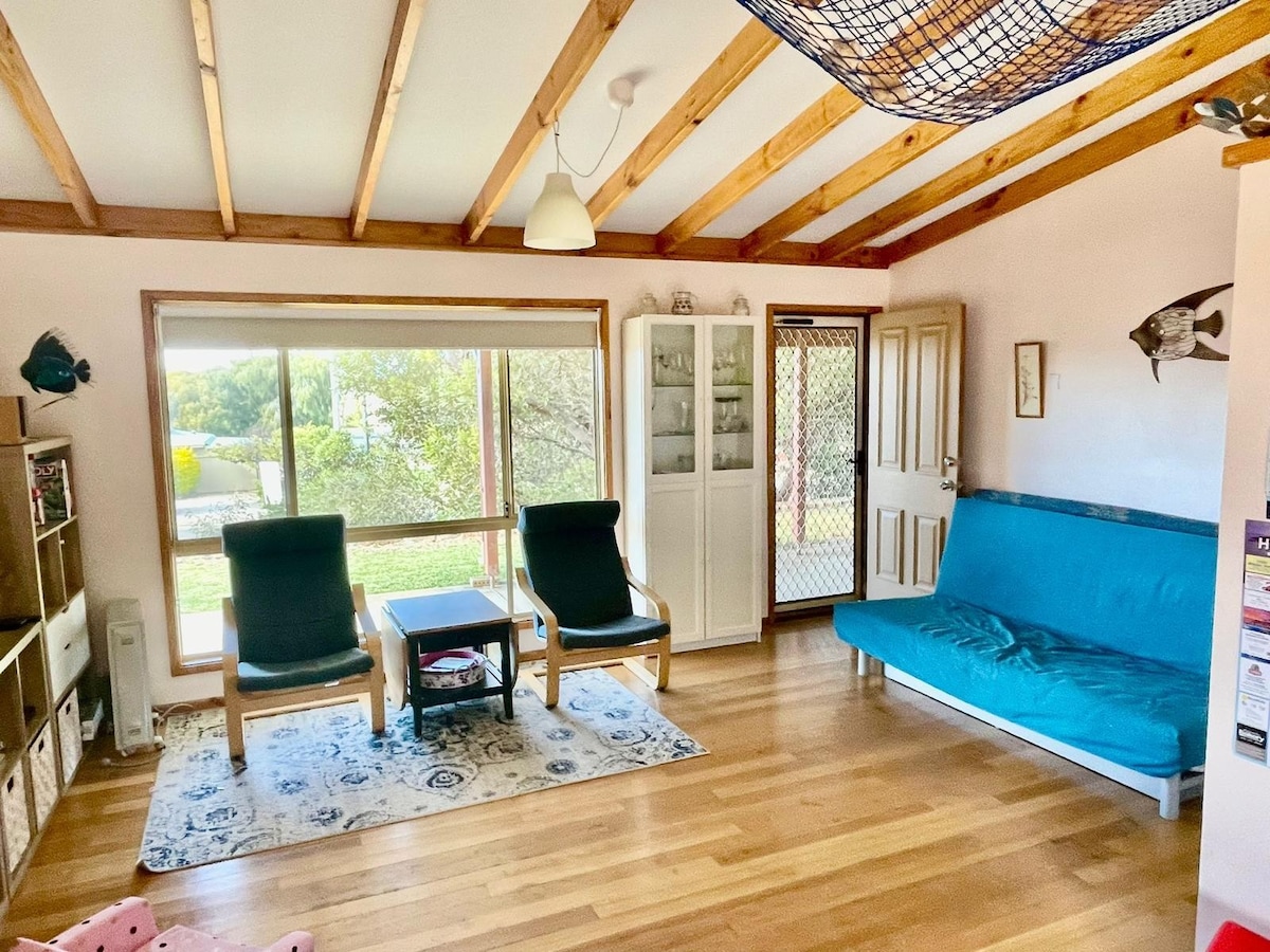 Our accommodation is set on 5 acres with bike paths and other activities. 3 kms from town and beaches. Has a decking with bbq area. Netflix available. Very cosy atmosphere fire for your winter break, also light and bright with a Esperance theme for your summer stay. We also have other listings to suit any dynamics on our property. This is a 2 bedroom house attached to existing house with separate entrance with own double carport. Laundry is shared with owner with separate entrance.