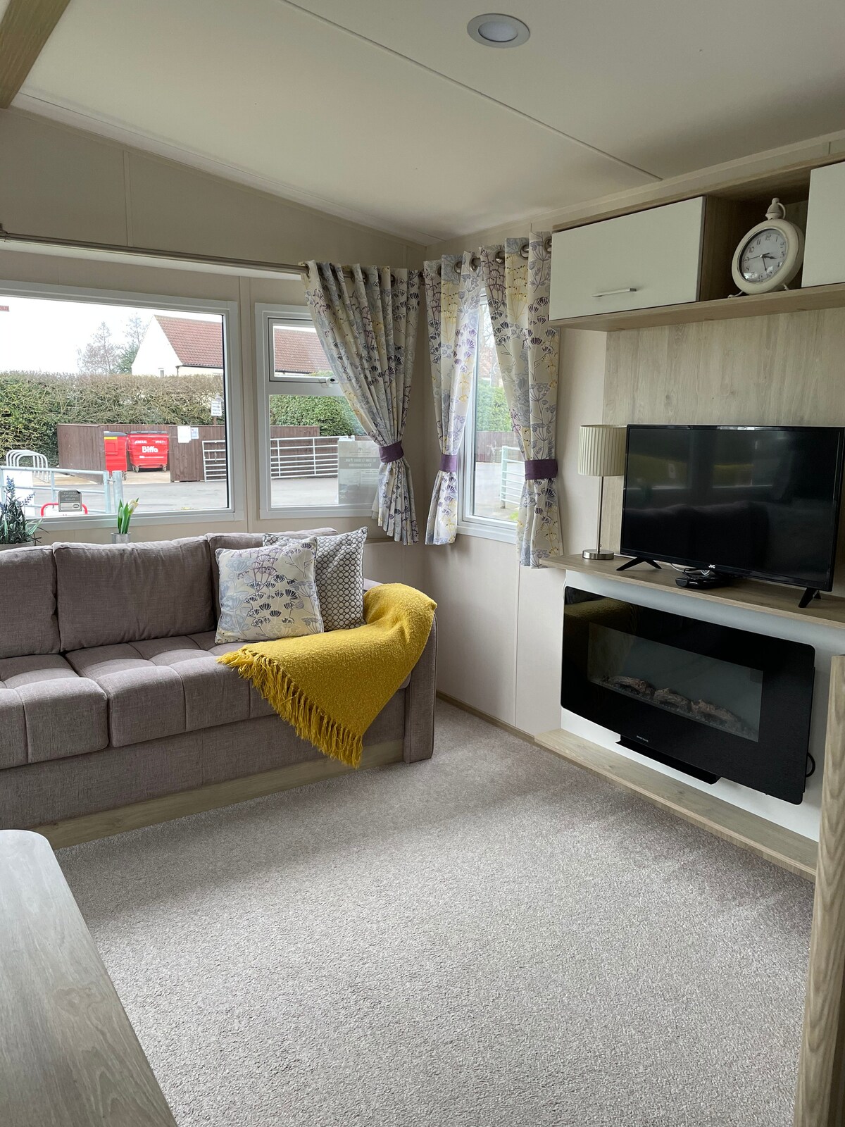 The Chill Out is a larger than average, dog friendly, 2 bedroomed, 2 bathroom 3 bed caravan (extra Zbed and travel cot also available). The caravan has free WIFI, Amazon prime and Disney+. It is situated on the peaceful Lido leisure park, Knaresboro. A pub, The Mill Tavern, serving bar food and weekend entertainment, children's playground, small site shop and laundrette. There is a cafe situated on the river Nidd, a 2 minute walk away with access to the river, Checkin 14:30. Checkout 10:30