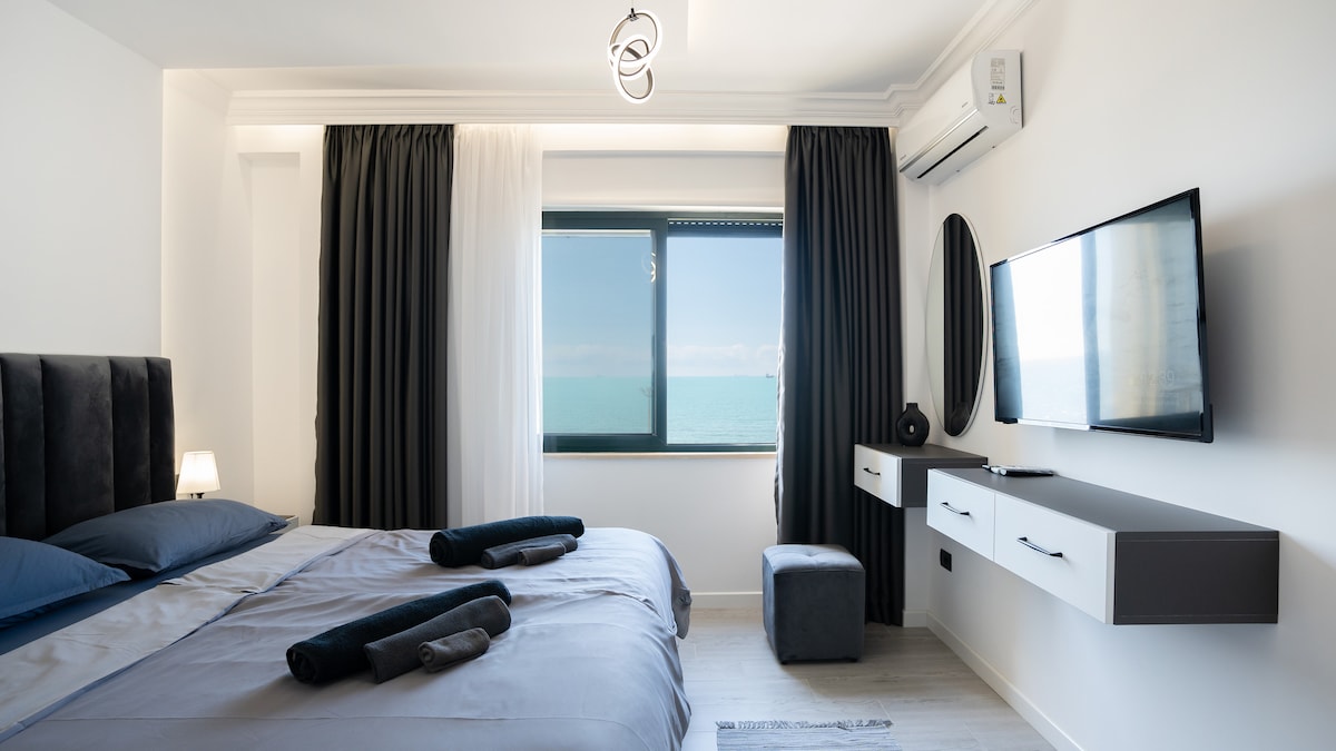 Beachfront Bliss with Jacuzzi & Bay Views 🌊✨ Step into luxury at our newly renovated 1-bedroom apartment, featuring a private jacuzzi on the balcony Ambient LED lighting with customizable colors and a full home sound system—all just steps from the sand in lively Durrës Bay. Whether you’re here to relax with a glass of wine in the jacuzzi, enjoy the lively atmosphere of the area, or simply wake up to the sound of the waves, this apartment has everything you need for an unforgettable stay.