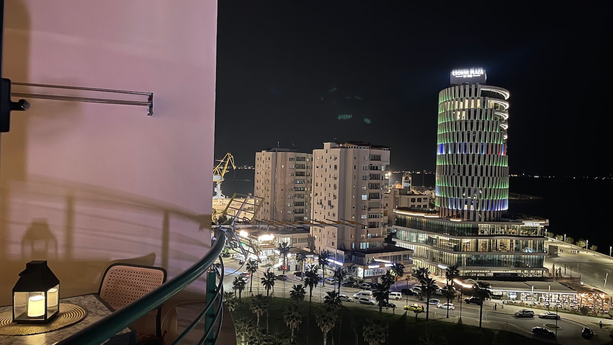 Beachfront Bliss with Jacuzzi & Bay Views 🌊✨ Step into luxury at our newly renovated 1-bedroom apartment, featuring a private jacuzzi on the balcony Ambient LED lighting with customizable colors and a full home sound system—all just steps from the sand in lively Durrës Bay. Whether you’re here to relax with a glass of wine in the jacuzzi, enjoy the lively atmosphere of the area, or simply wake up to the sound of the waves, this apartment has everything you need for an unforgettable stay.