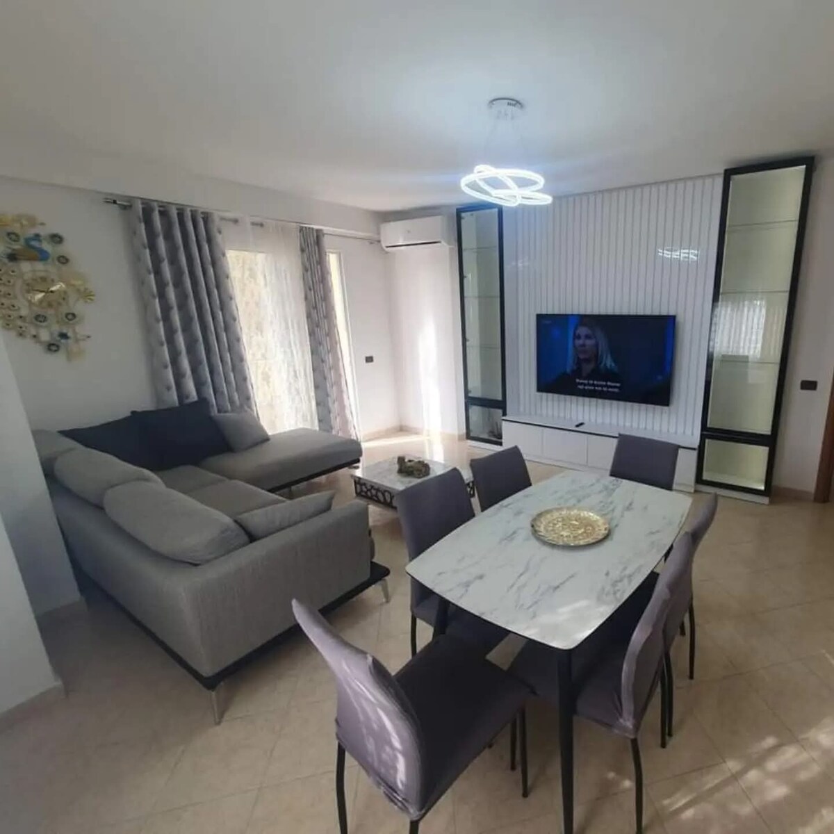 The penthouse of 92 sq meters, with a 115 sq meters terrace is situated in the fifth floor and has an exclusive lift from the ground level. Full view of Durrës Bay.