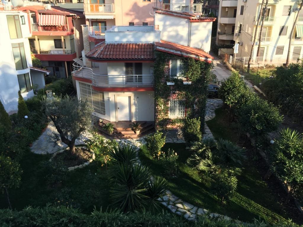 Charming two-floor beachside villa just steps from Golem’s shore—perfect for families or groups. Relax in a tranquil garden, dine outdoors at the shaded table, or fire up dinner on the built-in barbecue. Inside welcomes open living and kitchen space, plus a cozy room with sofa bed and bath on the first floor. Upstairs: three bedrooms (one with a spacious balcony). Fully equipped—kitchen, appliances, linens, hairdryer, iron—and free on-site parking.