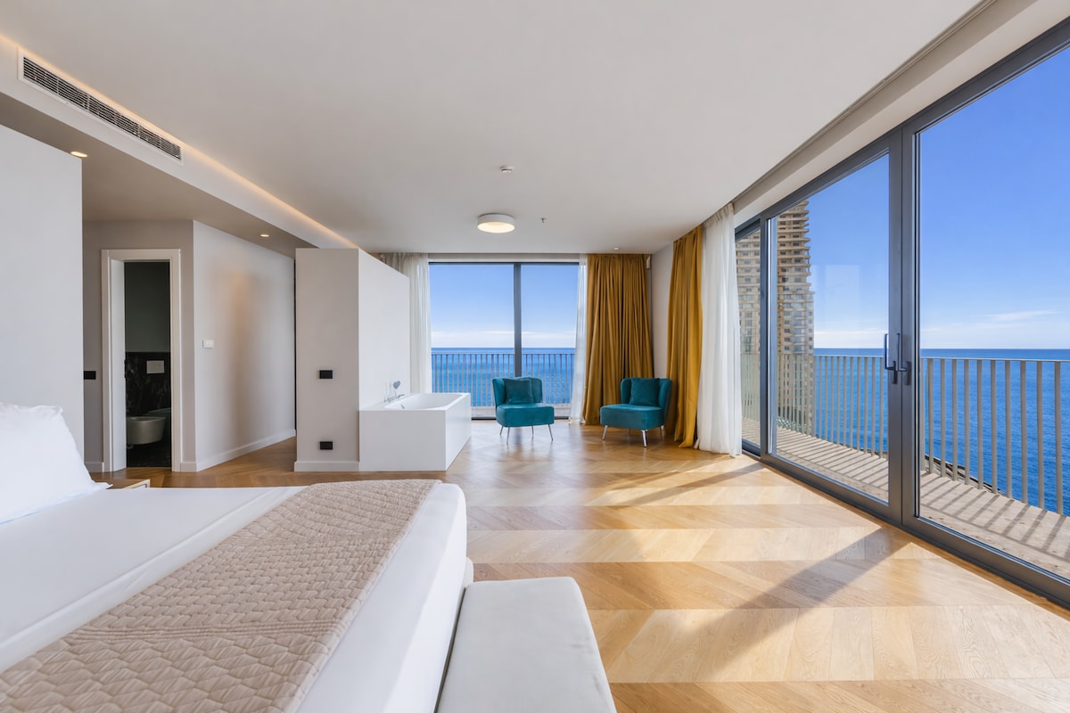 Relax in our spacious double room featuring a comfortable double bed and a private Jacuzzi for ultimate comfort. Enjoy free Wi-Fi, air conditioning, TV, and a modern bathroom. Perfect for a romantic getaway or a relaxing stay close to the sea.