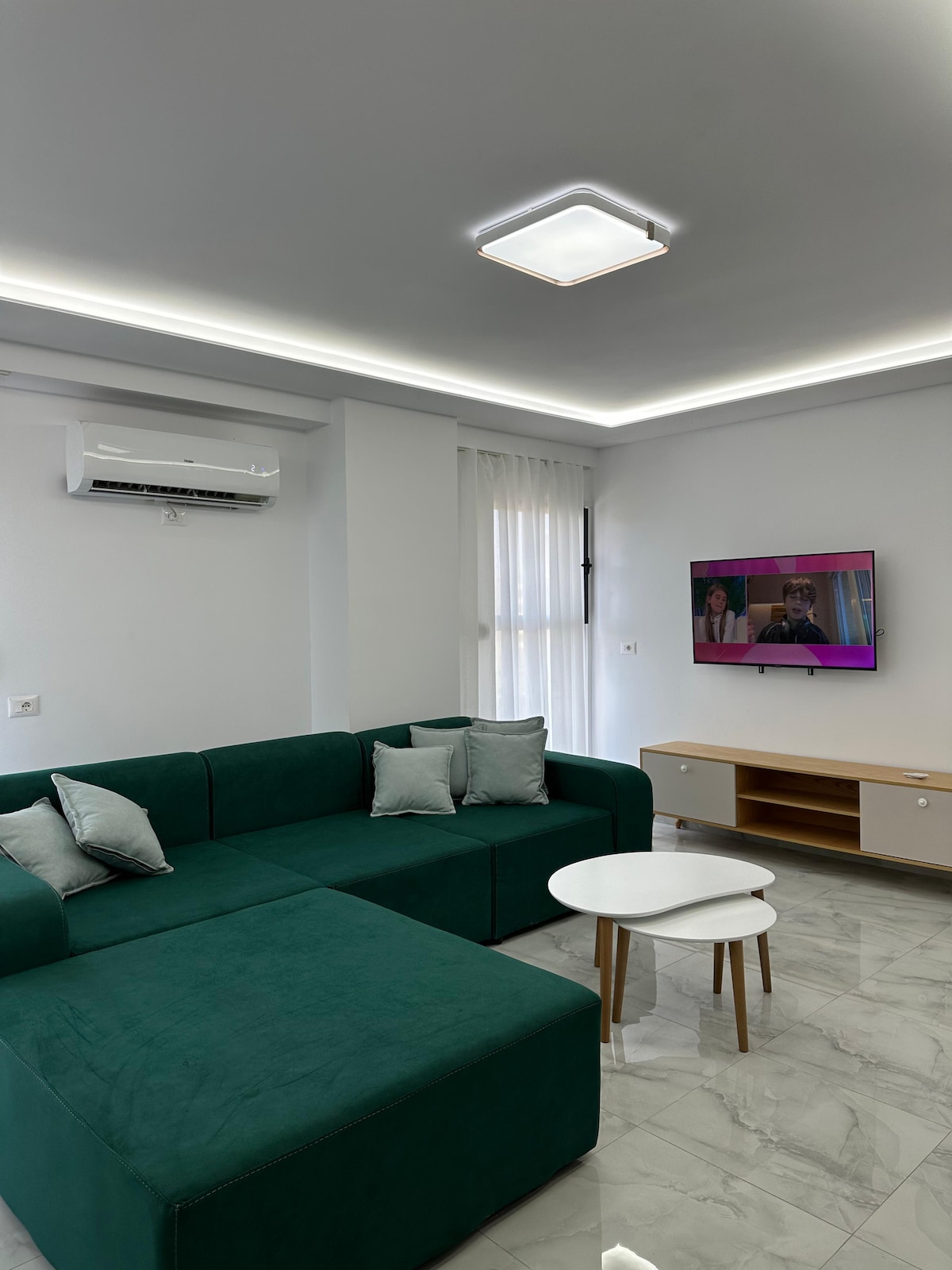 All the craftsmanship and creativity of one of Albania’s top interior design studios has been poured into this apartment. A space infused with Mediterranean simplicity, minimalist elegance, and a subtle “vacation vibe” in every corner. All of this is wrapped into 70 m² of comfort—including a generous 10 m² balcony where you can enjoy views of the aquapark and the rolling hills surrounding the village of Golem.