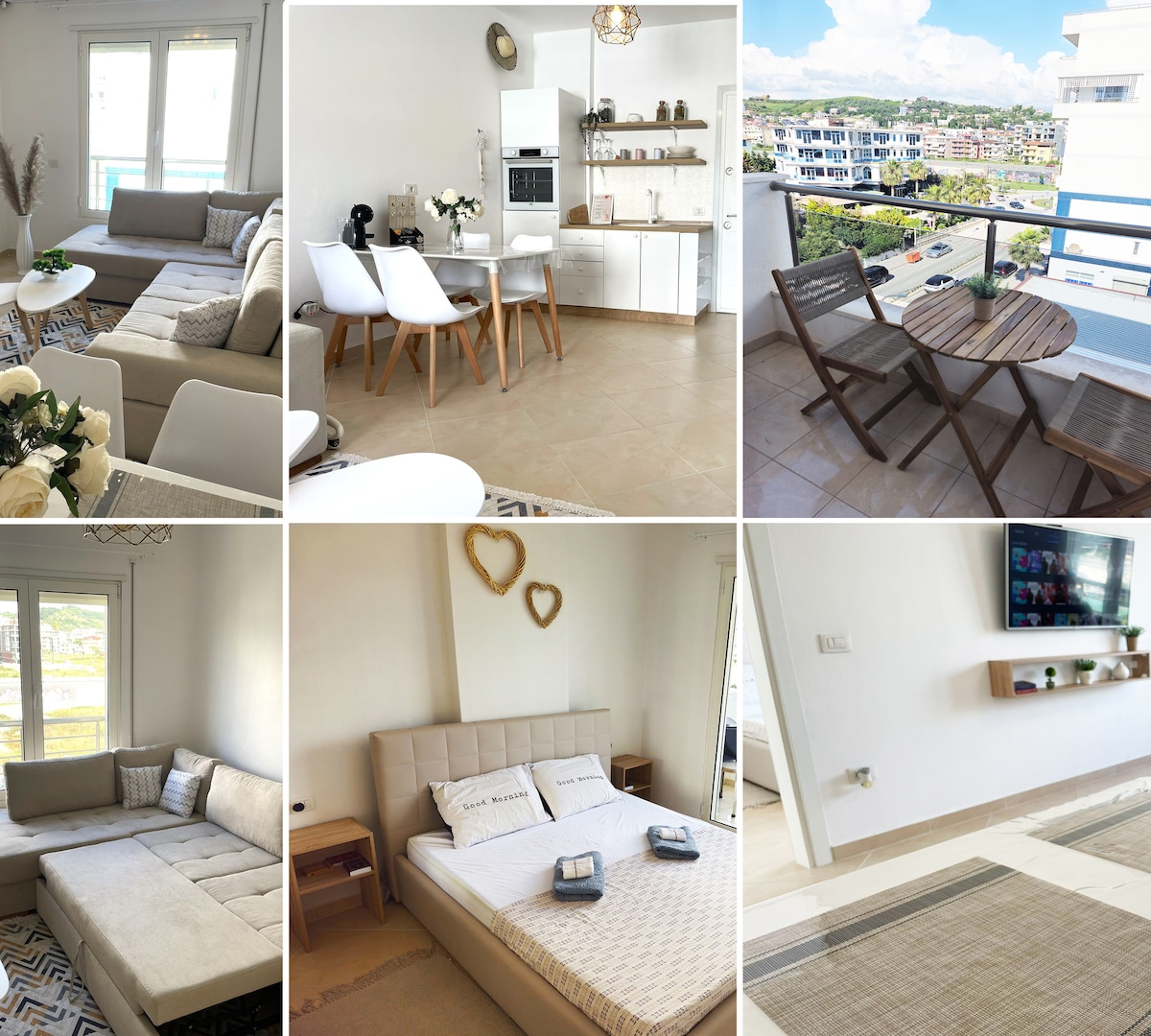 Relax with the whole family at this peaceful place to stay. Best Location in Mali Robit, Golem. Seaview and Pool View. Apartment is 3 Bedroom and has a large balcony with great sea and pool view for perfect mornings and sunsets. Included Wi Fi, Ditital TV, Clothes washing machine, Fridge, Iron ect. The place is fully with Pines and Palms.\ PS! The pool is accesable by extra payment. Enjoy your stay with your home family.