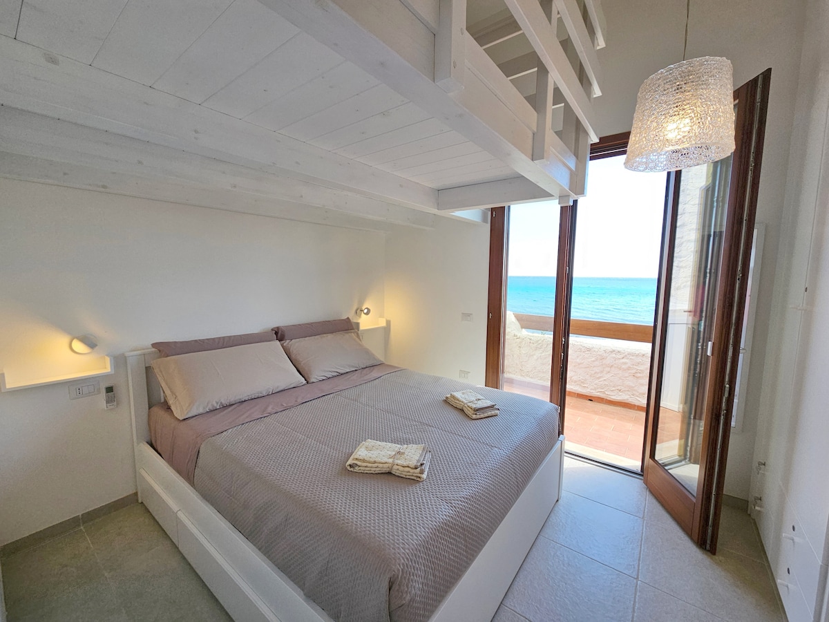 Rilassati con tutta la famiglia in questo alloggio fronte spiaggia. Graziosa ed accogliente villetta su due livelli con terrazza vista mare e accesso diretto alla spiaggia dell’esclusivo e riservato Condominio La Perla Marina, LA PERLA SUL MARE può accogliere sino a 4 ospiti. Dispone di un open space con soggiorno e cucina, un bagno e due camere da letto matrimoniali di fronte al mare.