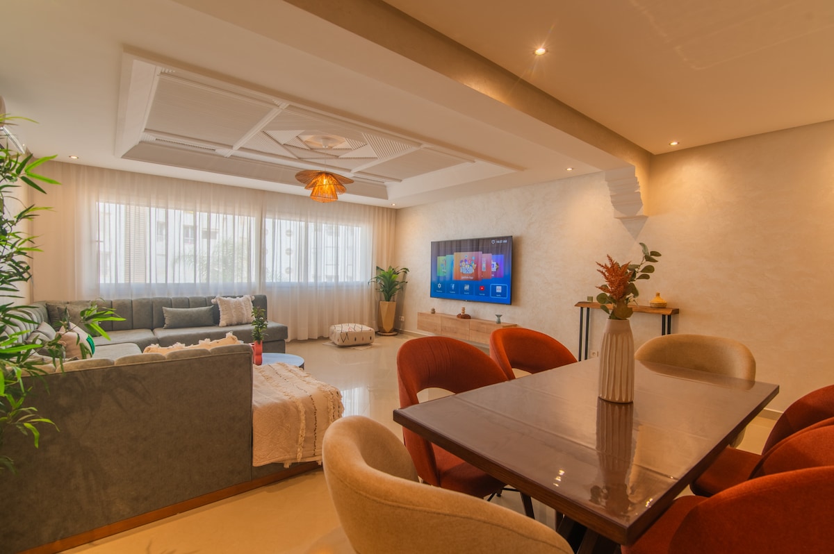 Retraite Tranquille | Moderne | Climatisé | 15min Plage | Wifi | Netflix | 15min Stade Adrar Agadir Bienvenue dans notre appartement moderne et neuf situé dans un quartier sécurisé proche de toutes commodités. Il comprend deux chambres confortables, un salon chic avec TV connectée et Netflix, une salle de bain propre et une cuisine équipée. Vous apprécierez son atmosphère chaleureuse qui vous fera sentir chez vous dès votre arrivée 🧾 Une facture de réservation est disponible pour votre séjour