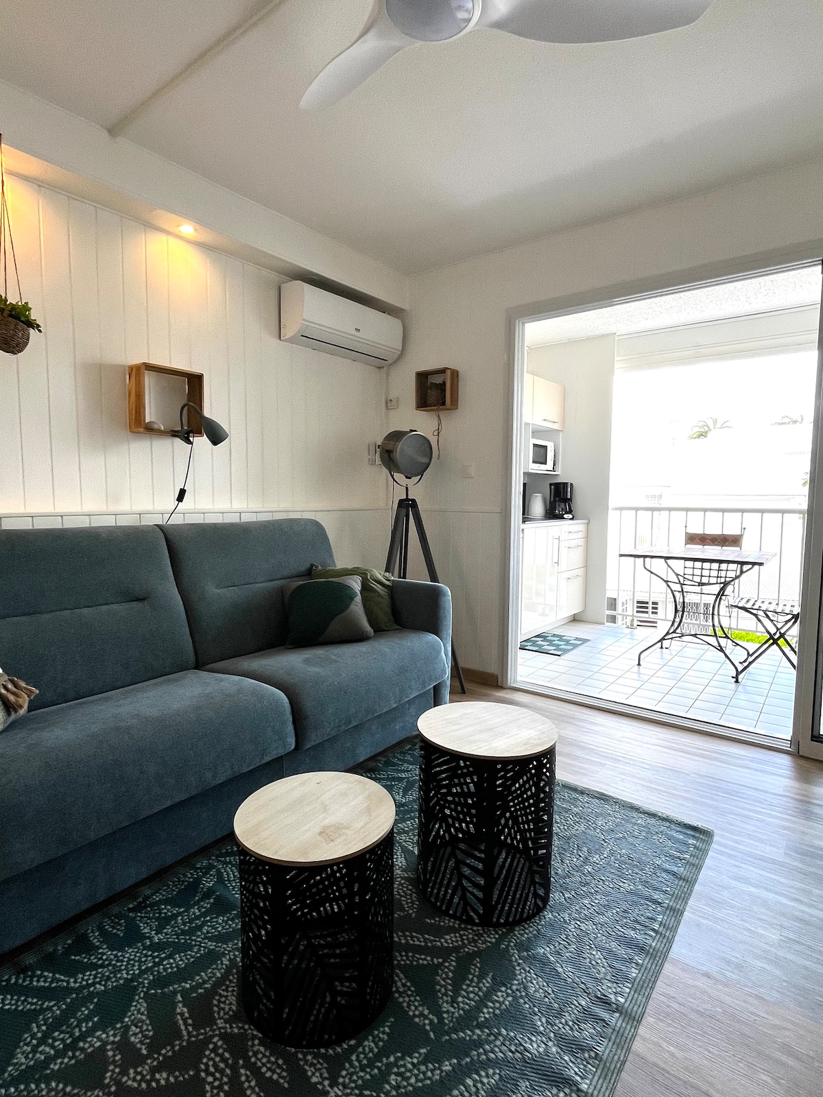 L'appartement, pour 2 personnes, dans la Residence Boucaniers est climatisé, entièrement rénové et équipé. Il se trouve au 2ème étage avec vue sur mer et jardin. La Residence est entièrement sécurisée avec une piscine commune et accès direct sur la plage et près de tous les commerces à pied. Le linge de maison (draps, torchons, serviettes) et les draps de plage sont fournis. Le matériel bébé (lit, chaise haute, baignoire) est à disposition sur demande.